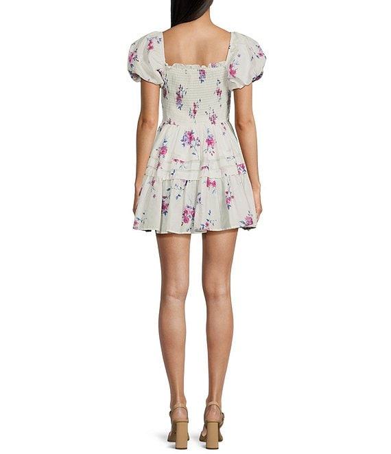 B. Darlin Floral Print Puff Sleeve Smocked Fit And Flare Dress