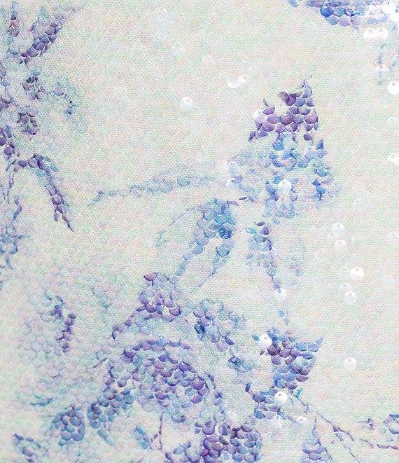 From B. Darlin, this sheath dress features: Floral printed sequin fabric V-neckline Spaghetti straps Bodycon silhouette Zip and lace up back closure 34" length Polyester/spandex; lined Hand wash/line dry Imported.