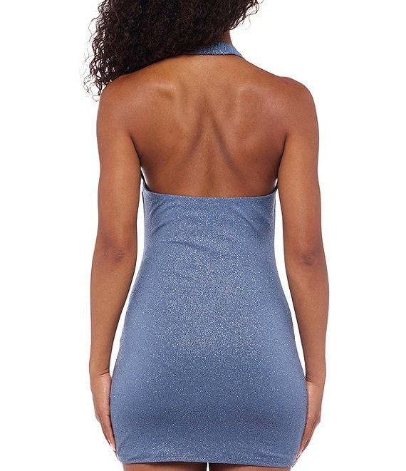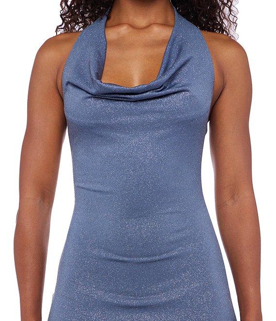 B. Darlin Glitter Knit Halter Cowl Neck Bodycon Dress