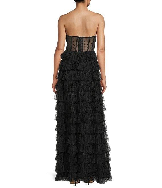 B. Darlin Mesh Strapless Pleated Illusion Bodice Ruffle Tiered Dress
