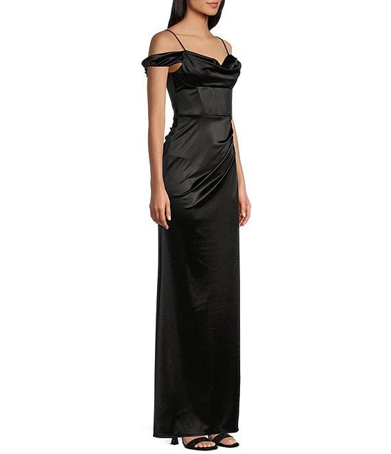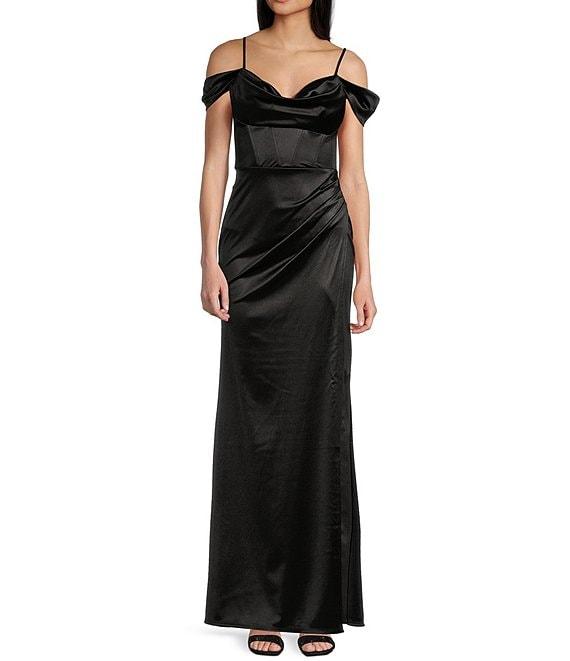 B. Darlin Off-The-Shoulder Corset Wrap Side Slit Long Dress