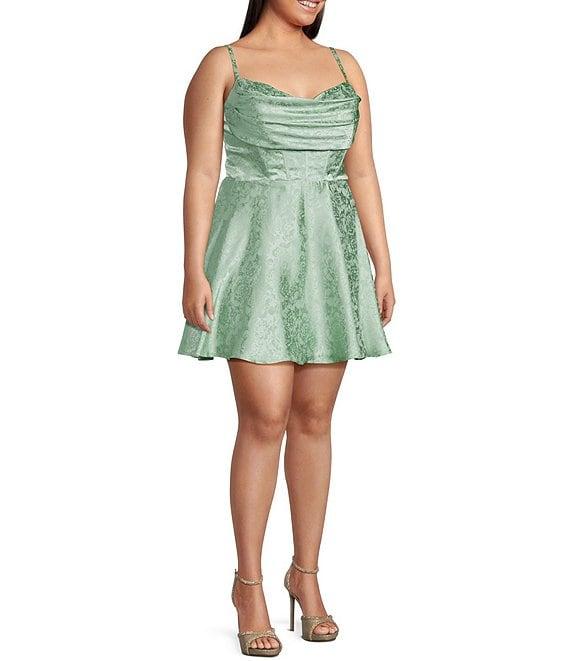 B. Darlin Plus Size Jacquard Cowl Neck Dress