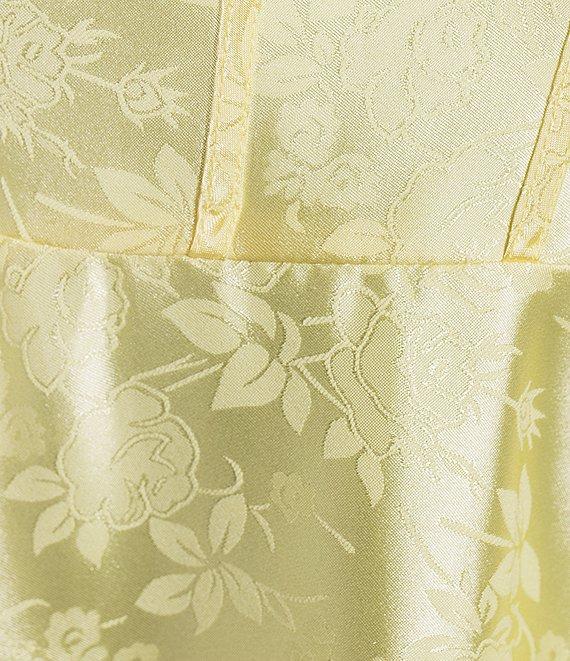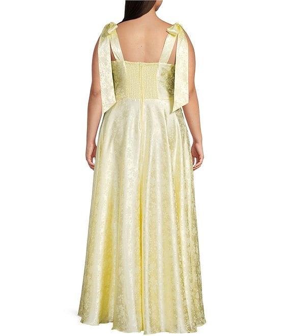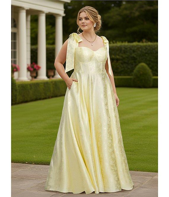B. Darlin Plus Size Satin Jacquard Sweetheart Neck Tie Shoulder A-Line Gown