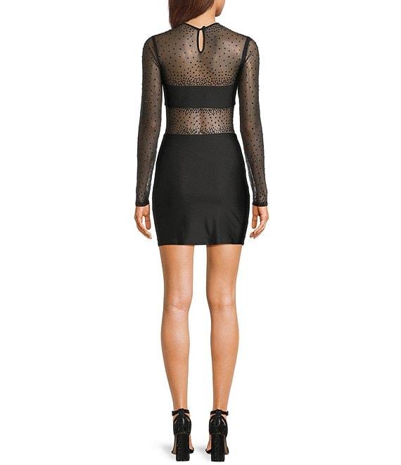 B. Darlin Sheer Illusion Stone Embellished Long Sleeve Bodycon Dress