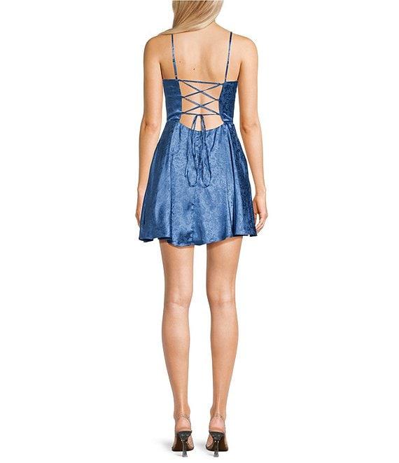 B. Darlin Spaghetti Strap Bustier Corset Bodice Pleated Lace Up Skirt