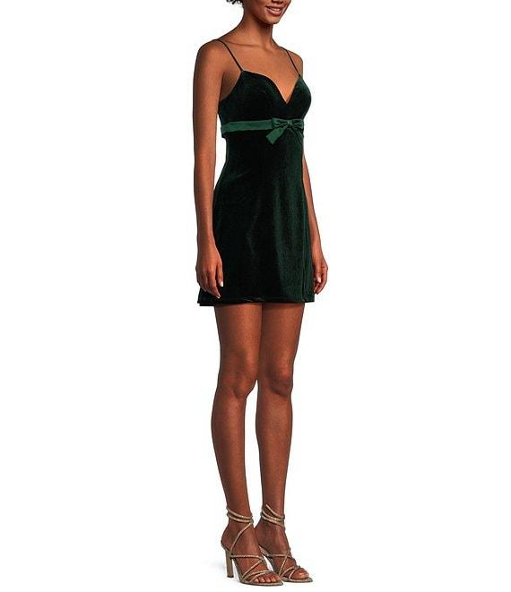 B. Darlin Spaghetti Strap V-Neck Stretch Velvet Slip Dress