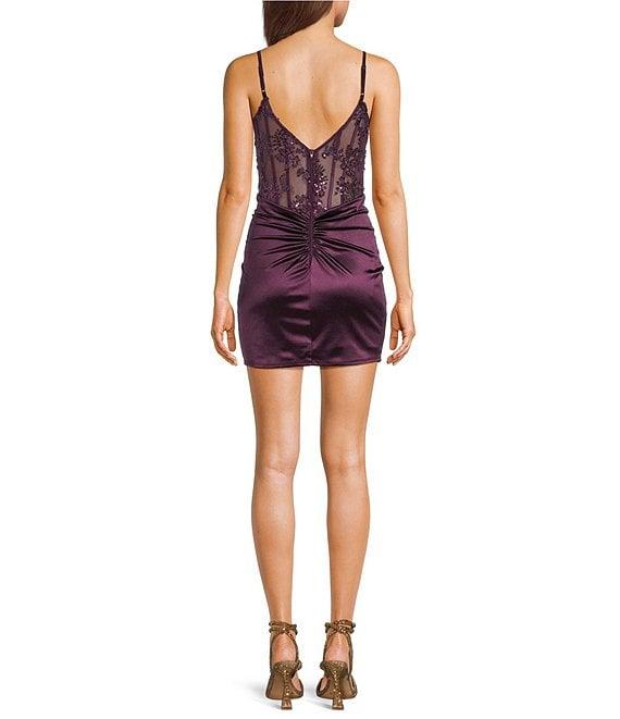 B. Darlin V-Neck Sequin Embroidered Illusion Corseted Front Slit Dress