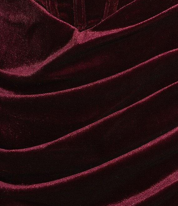 From B. Darlin, this dress features: Stretch velvet fabric Sweetheart neckline Sleeveless Adjustable spaghetti straps Bustier bodice Front slit Zip back closure Polyester/spandex; lined Hand wash/lay flat to dry Imported.