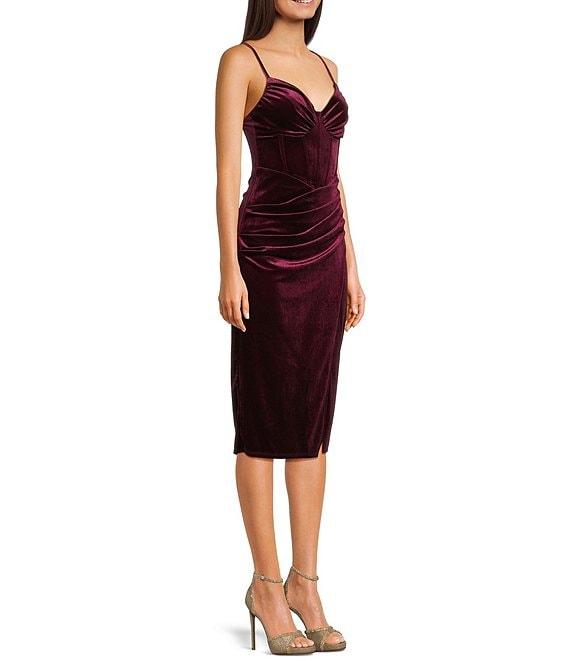 B. Darlin Velvet Bustier Bodice Front Slit Midi Dress