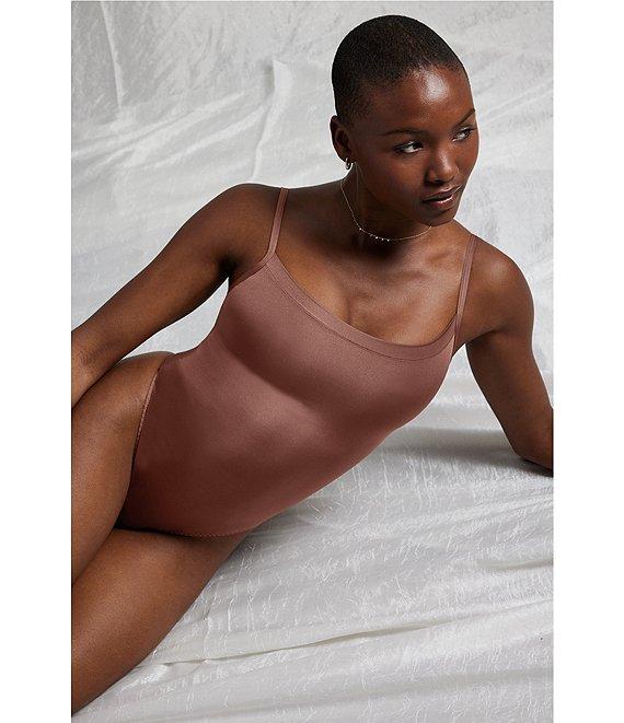 From b.tempt'd by Wacoal, this bodysuit features: Thong-back bodysuit Allover soft fabric with a subtle sheen Self-fabric shelf lining at bust Zig zag stitching for a retro look Fully adjustable straps Cotton gusset Nylon/spandex Hand wash/line dry Imported. Soft and sleek with a subtle sheen, this bodysuit is an upgrade to your everyday options