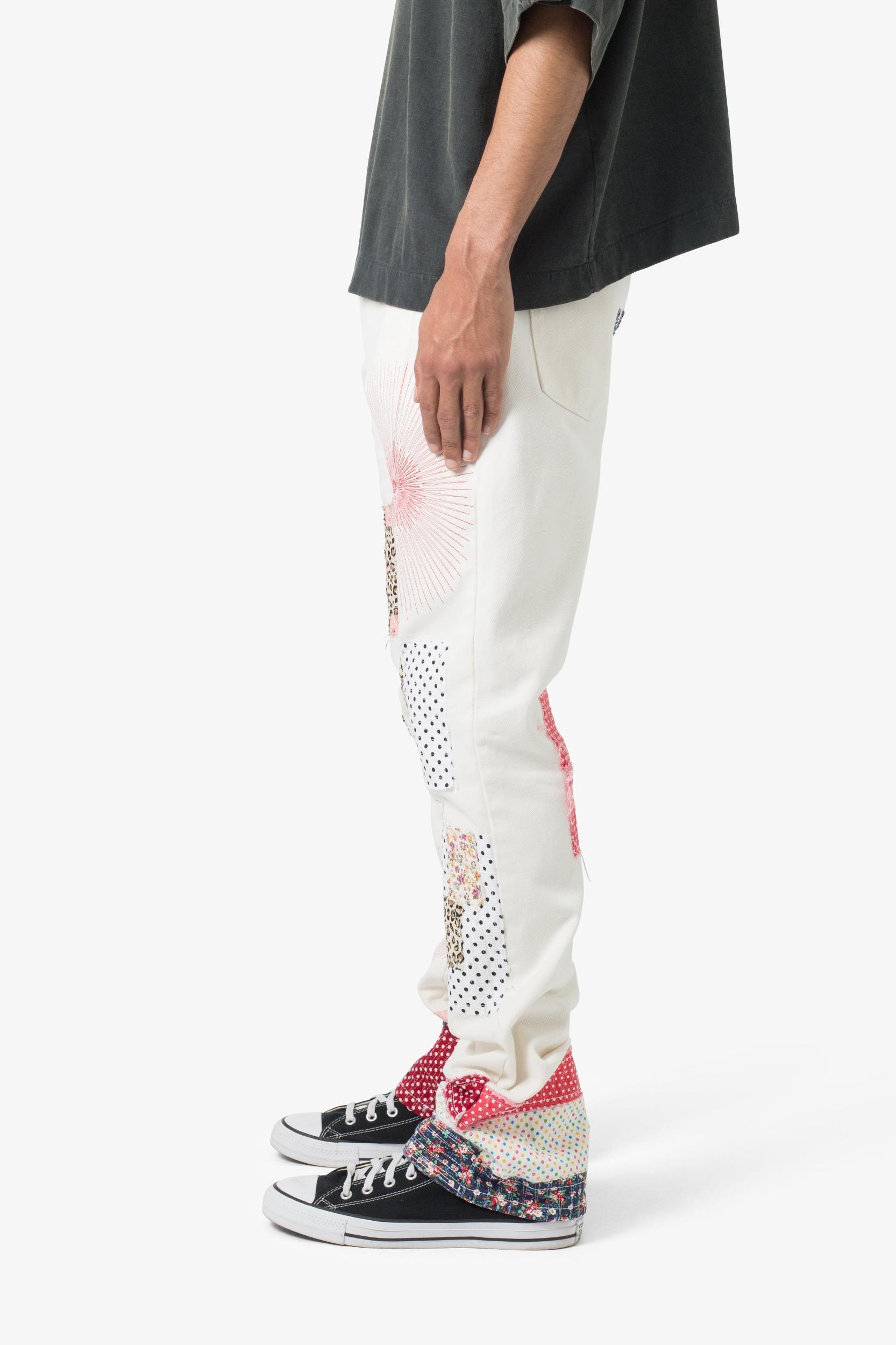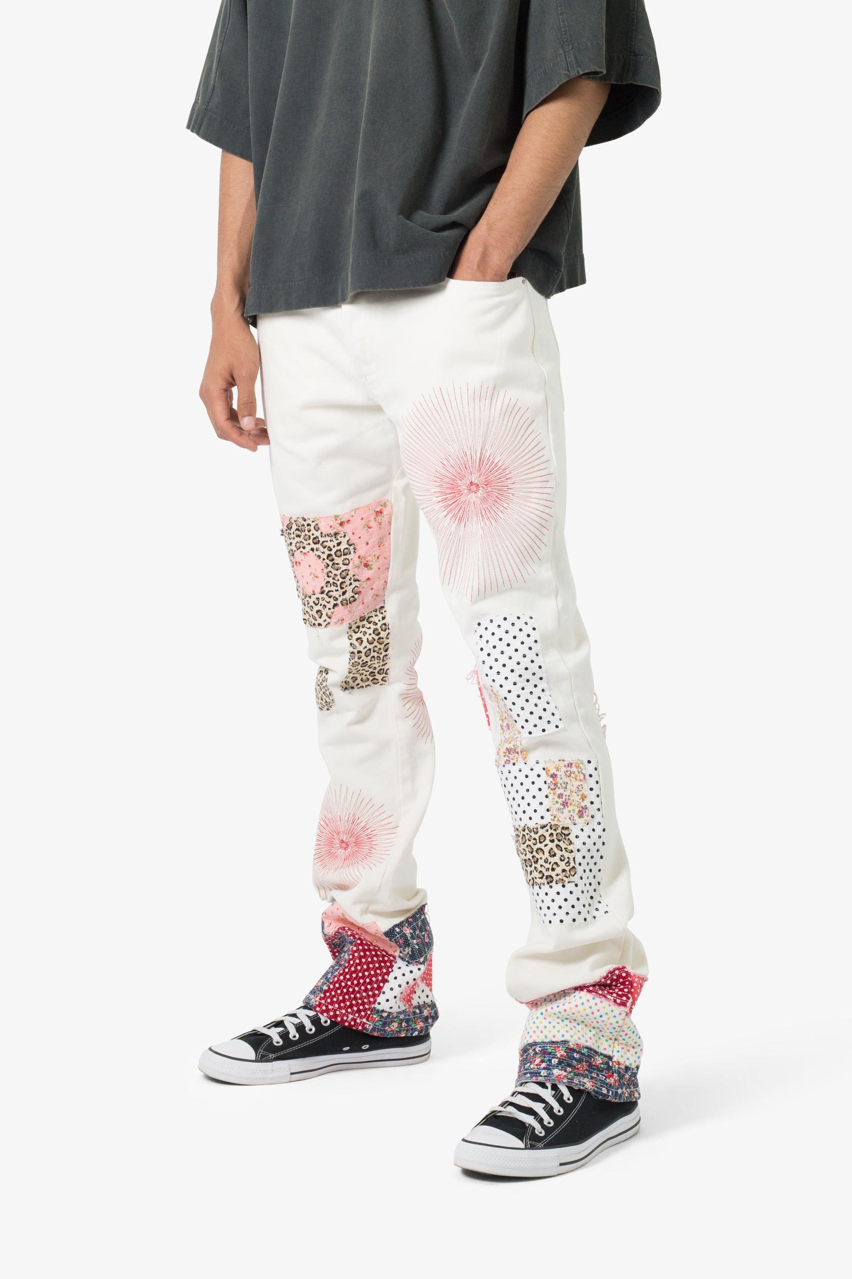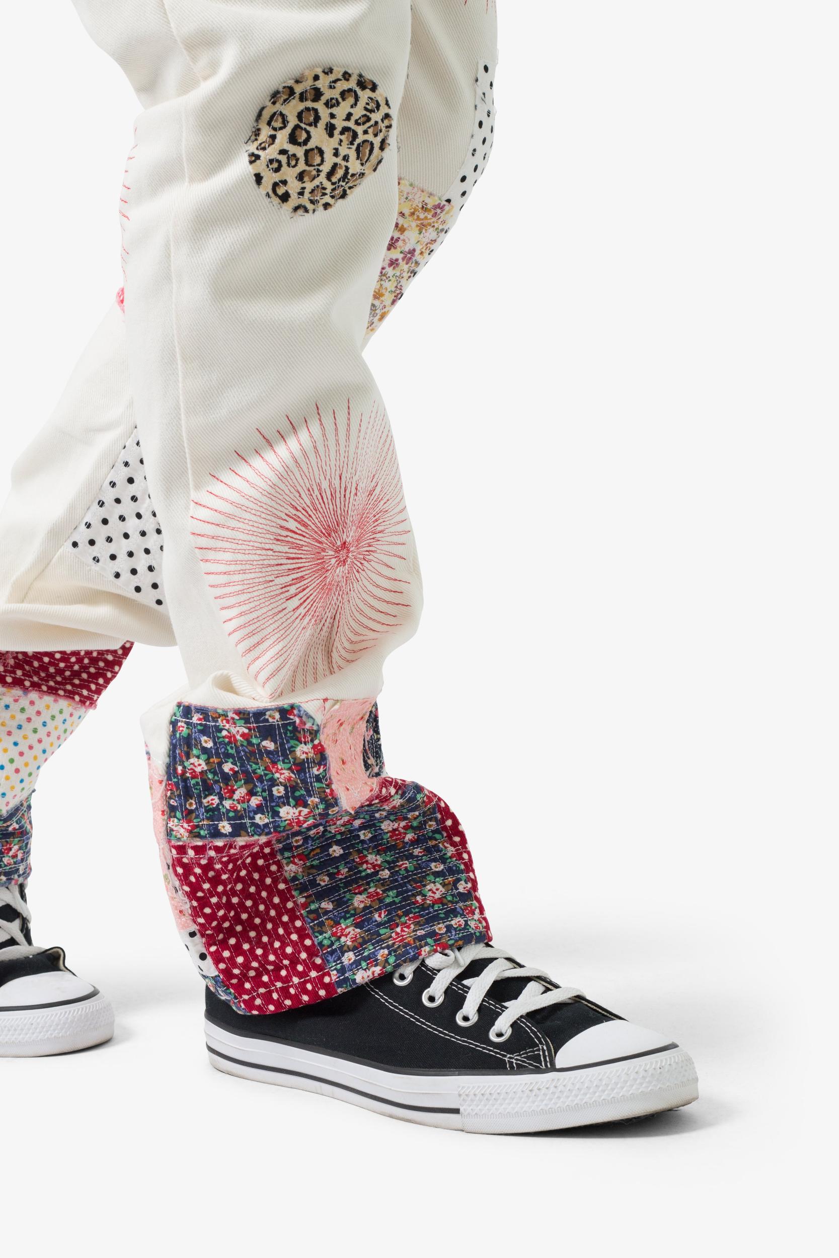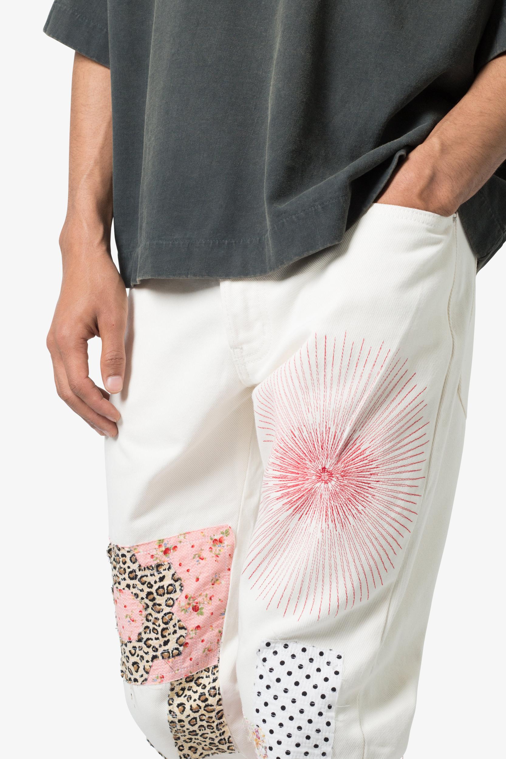 the B387 Rugged Flare Denim are designed in our B fit, which is relaxed through the thigh and features a slight flare at the leg opening and is constructed from a natural white denim fabric, embroidery and panneling details throughout, and finished with a traditional hem. details flare at leg opening 100% cotton model