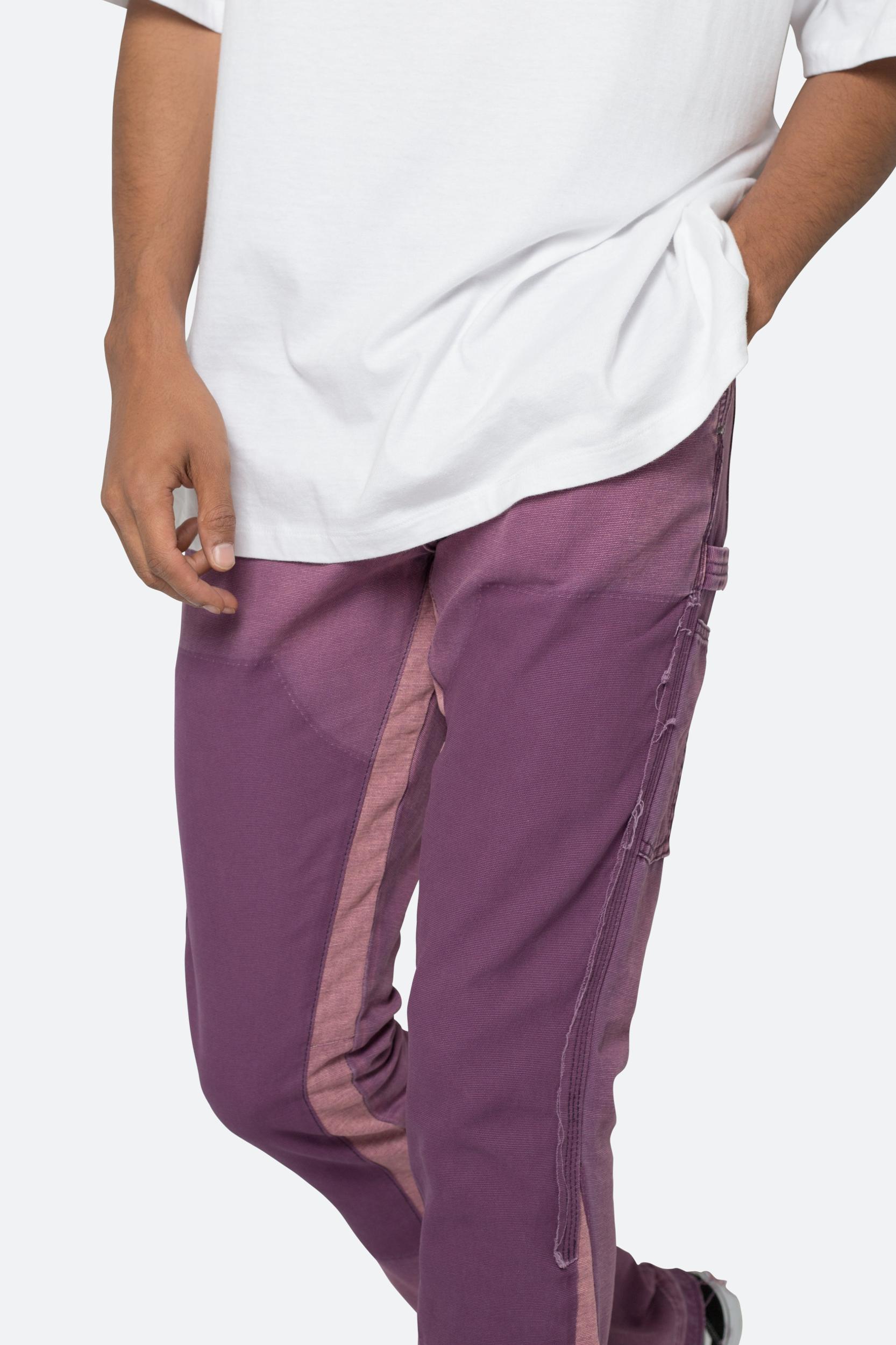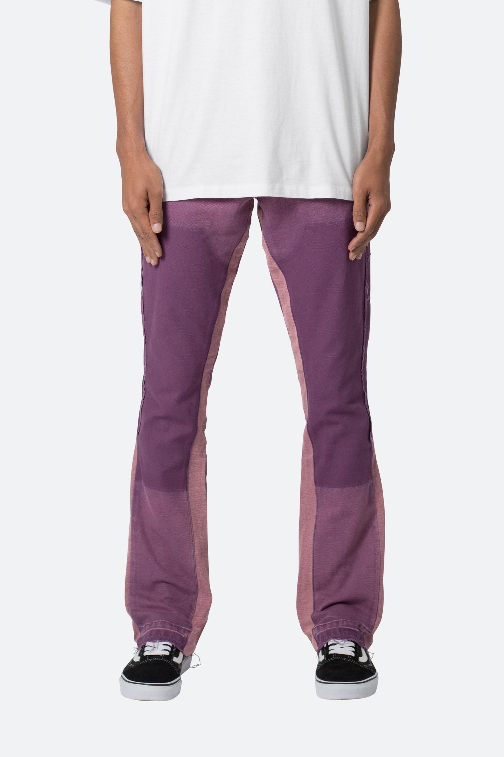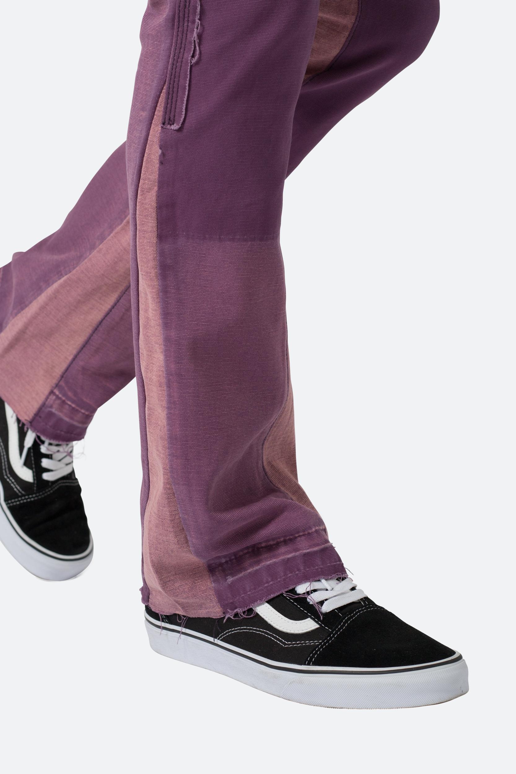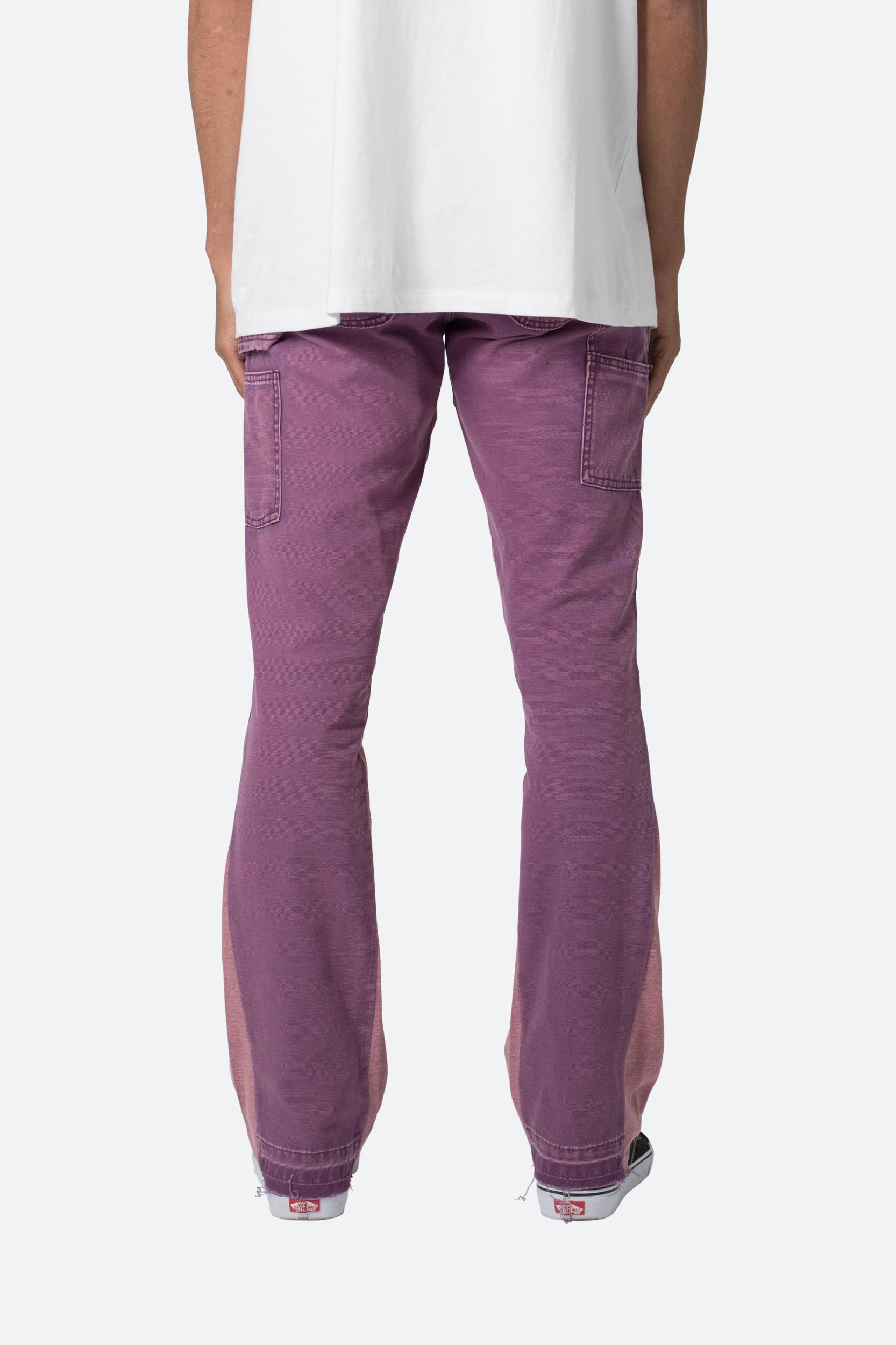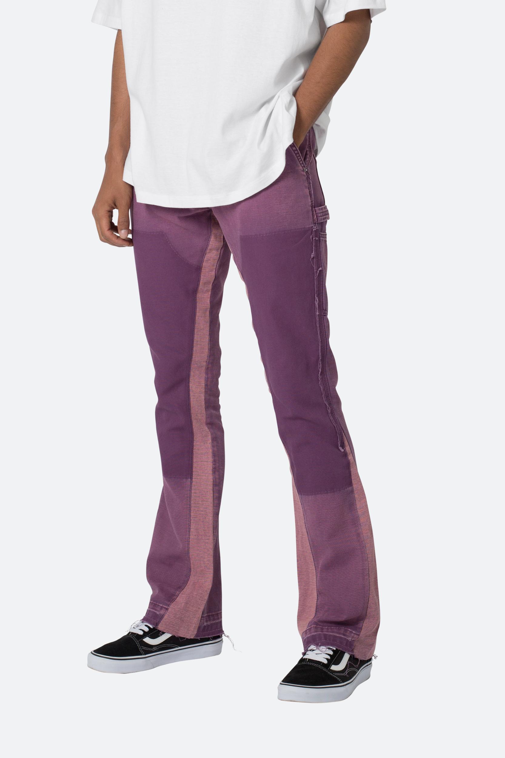 the B501 Flare Denim are designed in our B fit, which is slim through the thigh and features a slight flare at the leg opening and is constructed from washed duck twill, work pants panelling removed after wash for contrasting wash area, panelling at the inseam and outseam for a slight flare, and finished with a deconst
