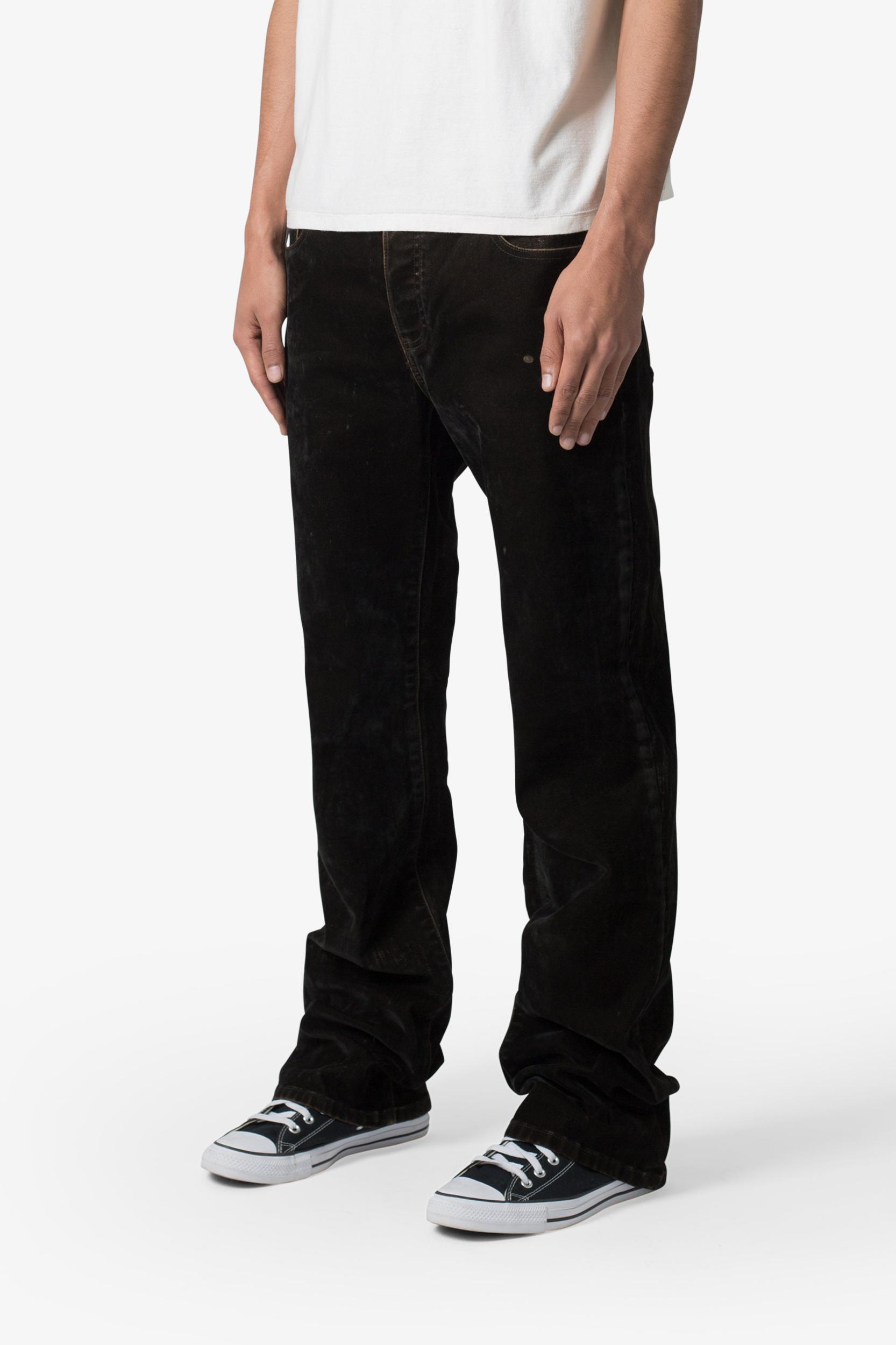 Introducing the B577 Suede Western Flare Denim, crafted from a comfort-stretch denim with a relaxed fit through the thigh and a distinct flare at the leg opening. The black denim base undergoes a unique flocked treatment, achieving a suede-like texture that’s both visually striking and pleasing to the touch. Embrace a