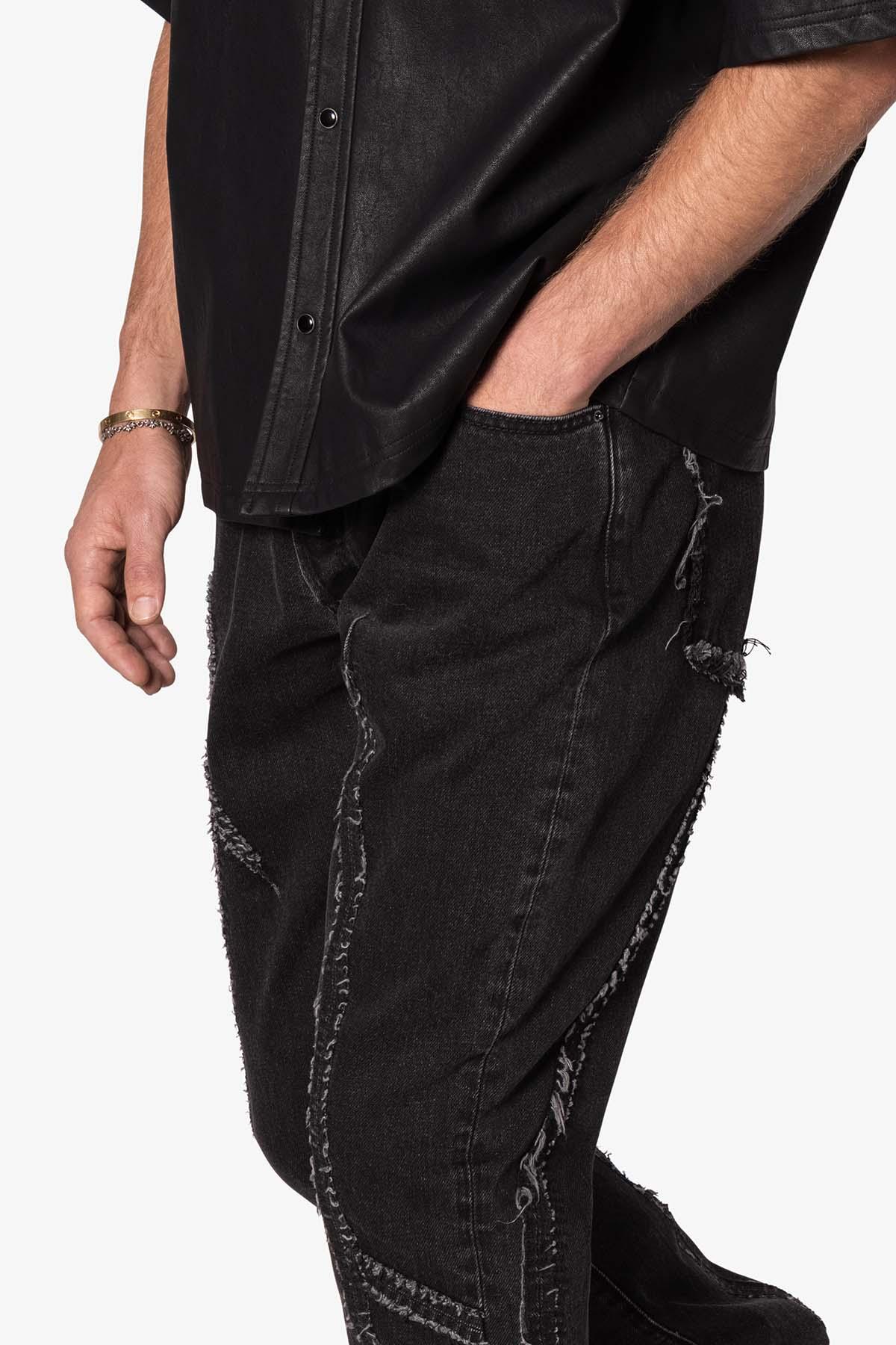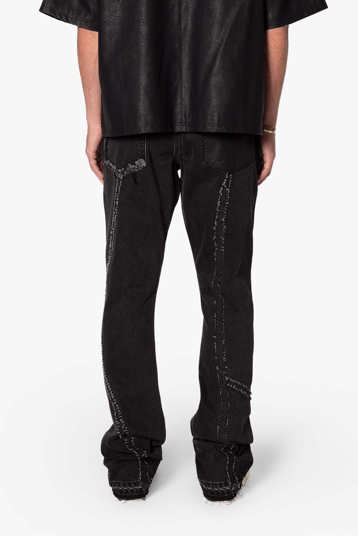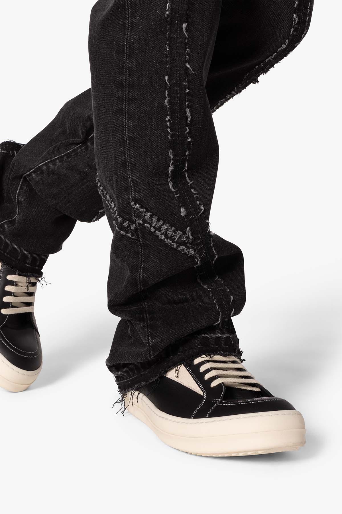 the B705 Tear and Repair Denim are designed with our new B fit, which is relaxed through the thigh and features a slight flare at the leg opening and is constructed from washed black denim, tear and repair details in tonal fabric throughout, and finished with a deconstructed hem. details flare at leg opening 100% cotto