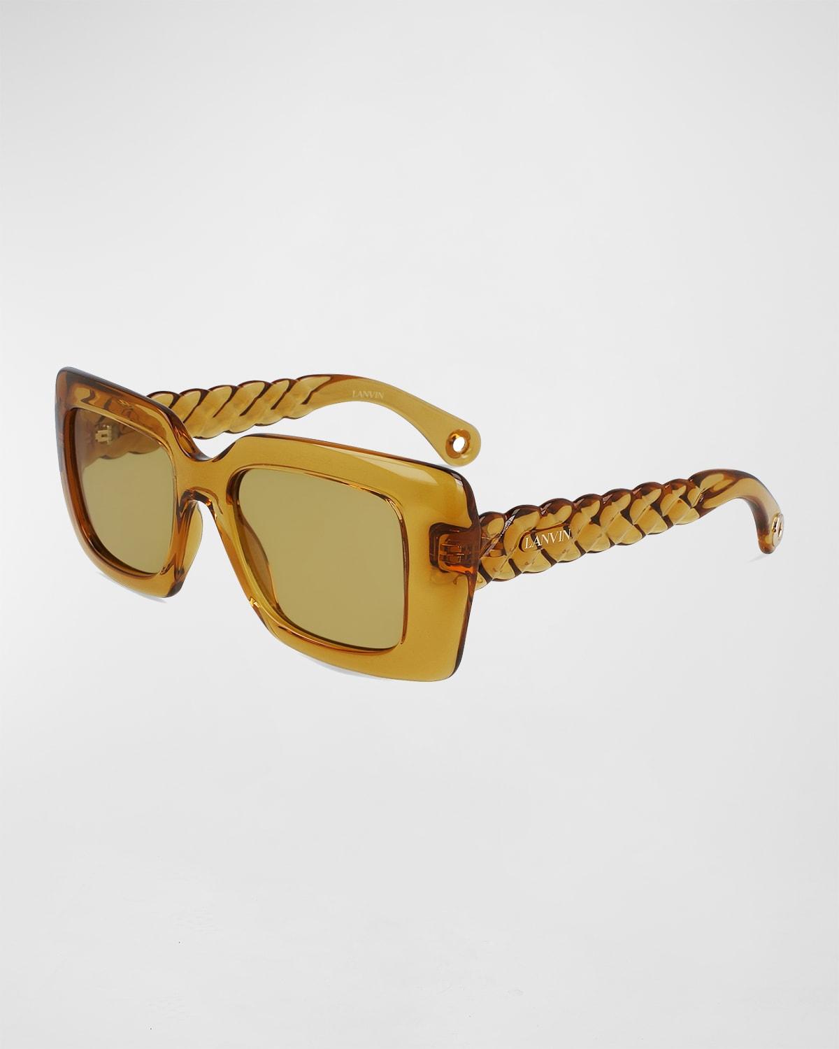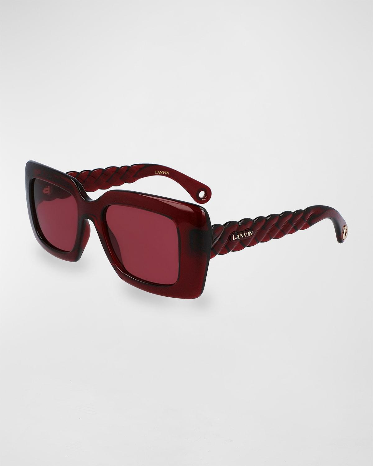 From the Babe Collection. Lanvins rectangular sunglasses flaunt a twisted arm design. 100% UV protection Solid lenses Case and cleaning cloth included Plastic Made in Italy SIZE 52mm lens width 19mm bridge width 140mm temple length. Soft Accessories - Sunglasses > Lanvin > Saks Fifth Avenue > Barneys. Lanvin. Color: Fuchsia.