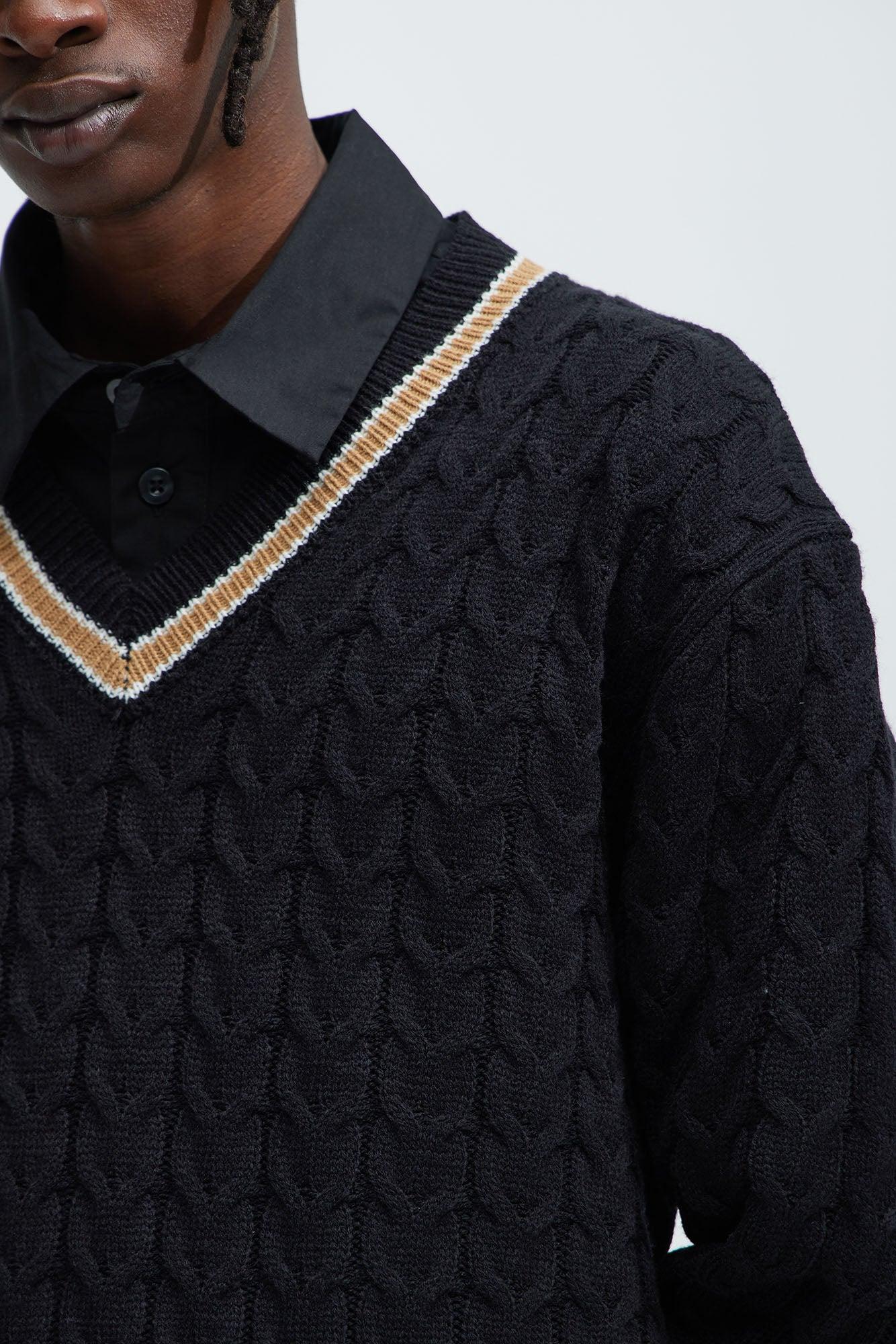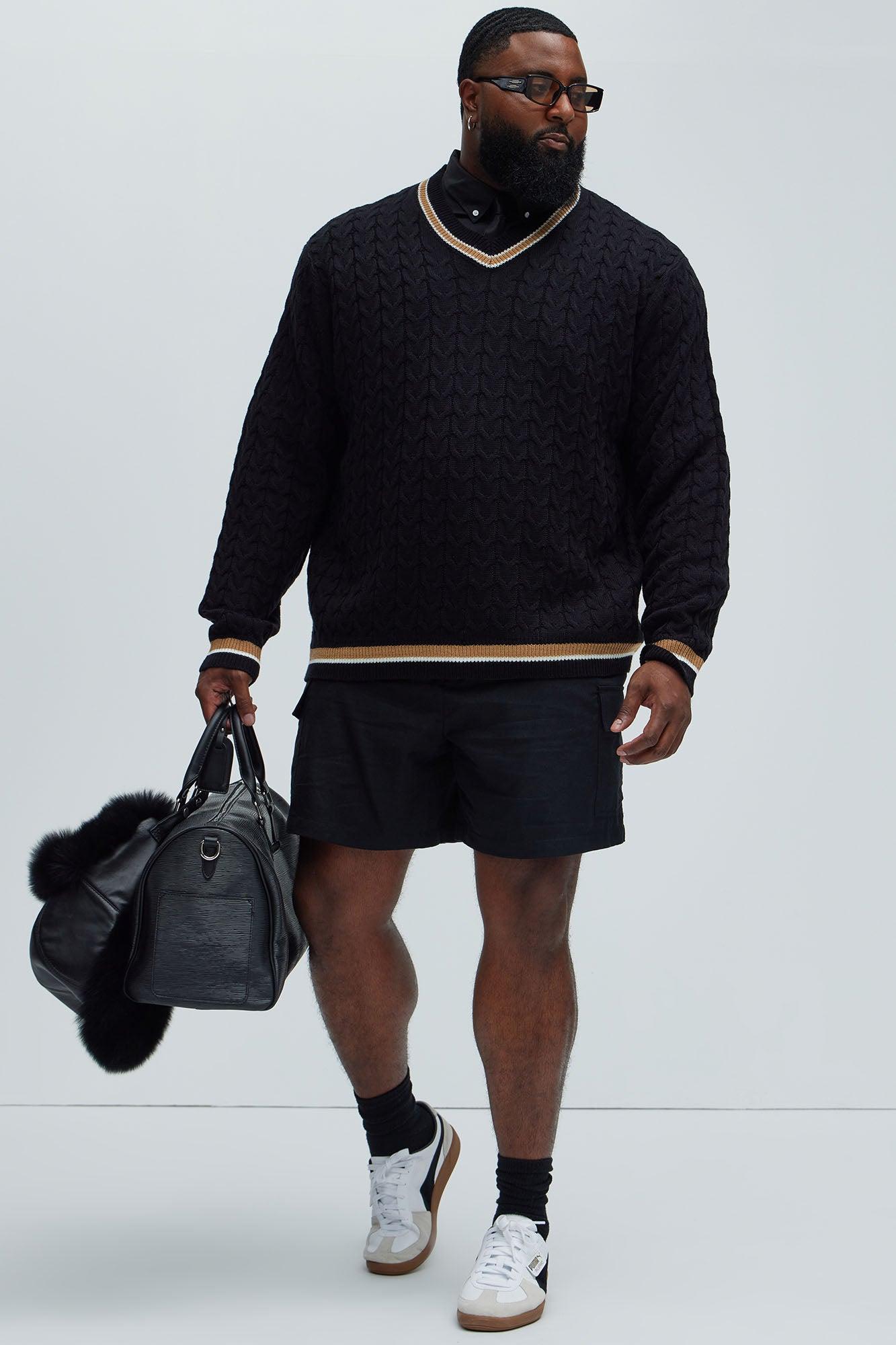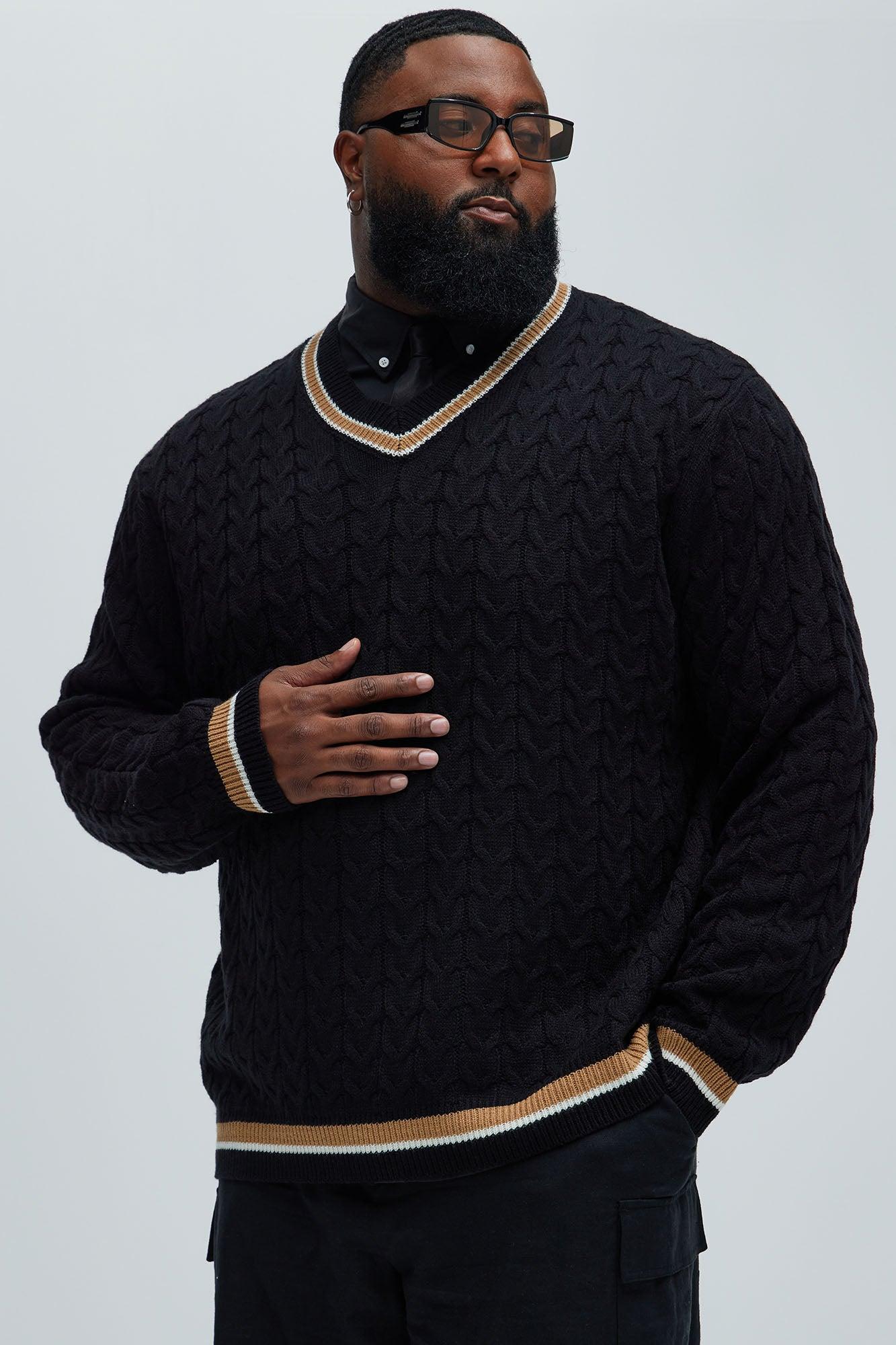 Model Height: 6'4 - Wearing Large Big & Tall: Height 6'5 - Wearing XXXL Available In Black/combo. V-Neck Long Sleeve Ribbed Cuffs And Bottom Hem 100% Acrylic Imported
