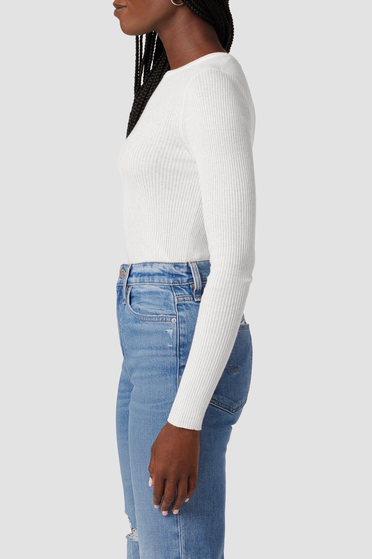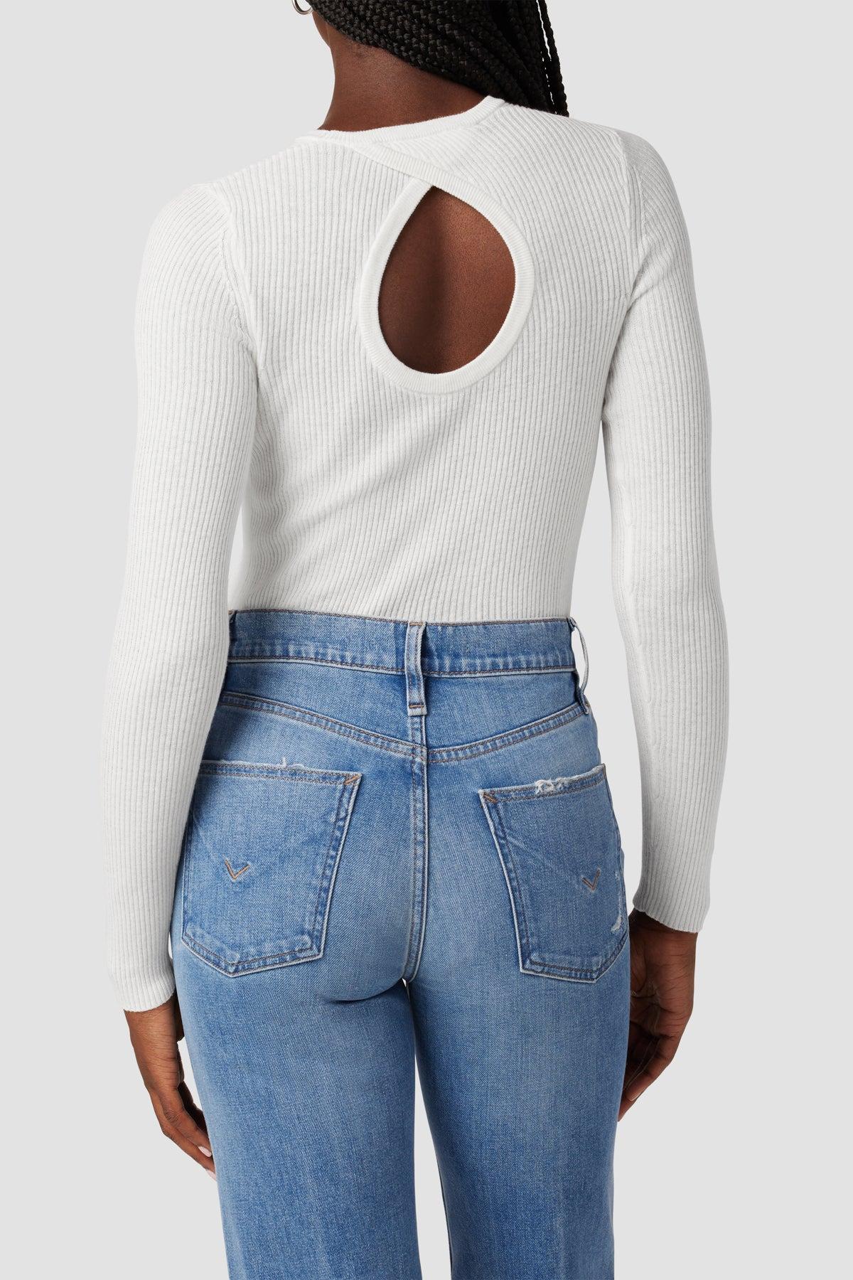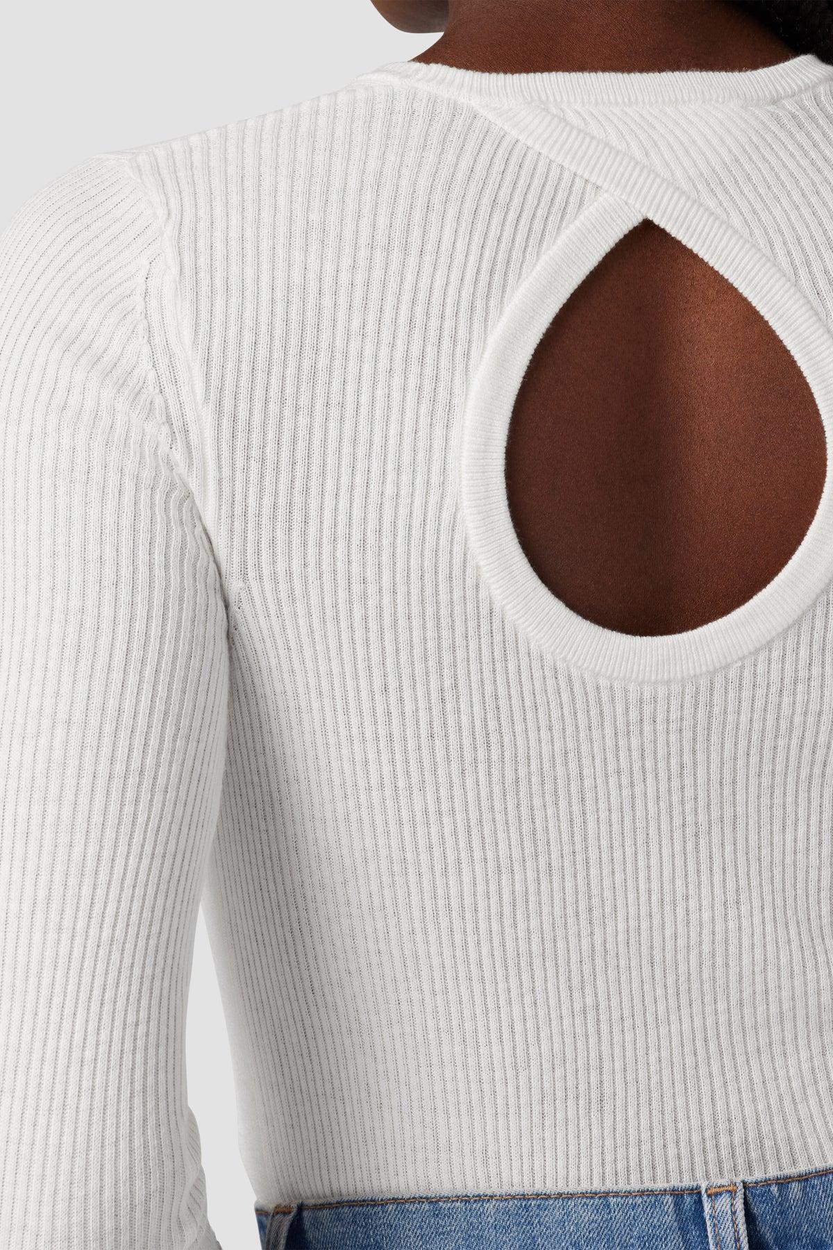 Description Our Back Keyhole Sweater in Laser White is crafted from an organic cotton blend featuring long sleeves and back keyhole cutout. As part of our Eco-Forward initiative, this garment is made with eco-friendly materials and innovative technology to soften our impact on Earth. Product Details Body Length: 23", Chest: 22.5", Sleeve Length: 25.5"Model wearing size SMeasurements based on size S Fit & Care Content: 70% Organic Cotton, 30% SeacellMachine wash cold with like colorsDo not bleachTumble dry low or hang to dry