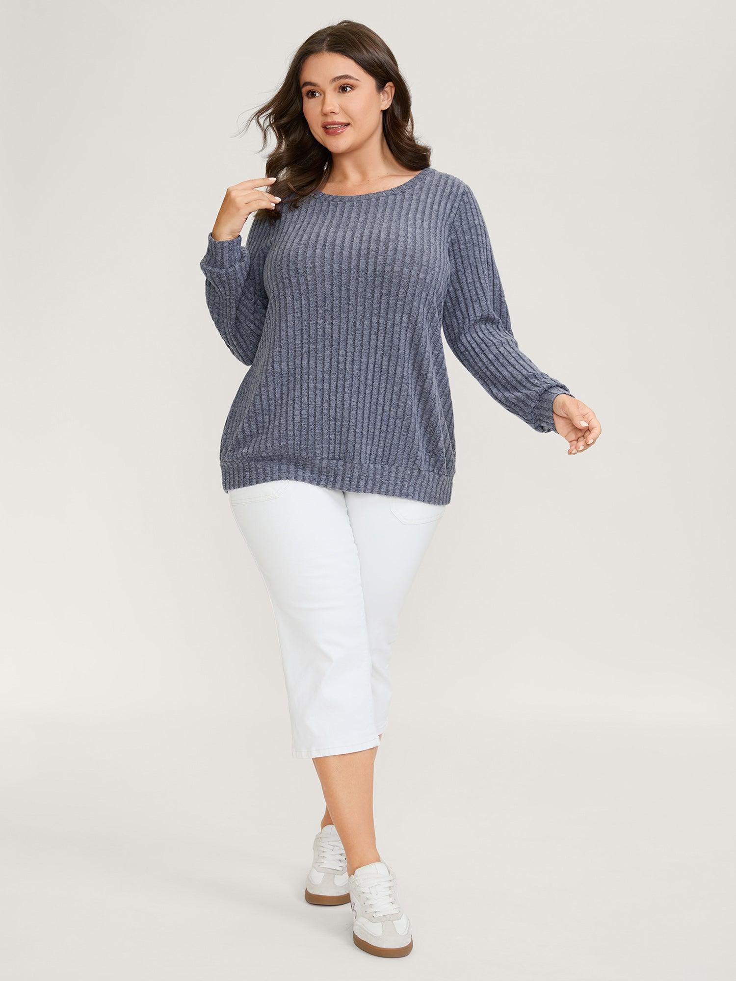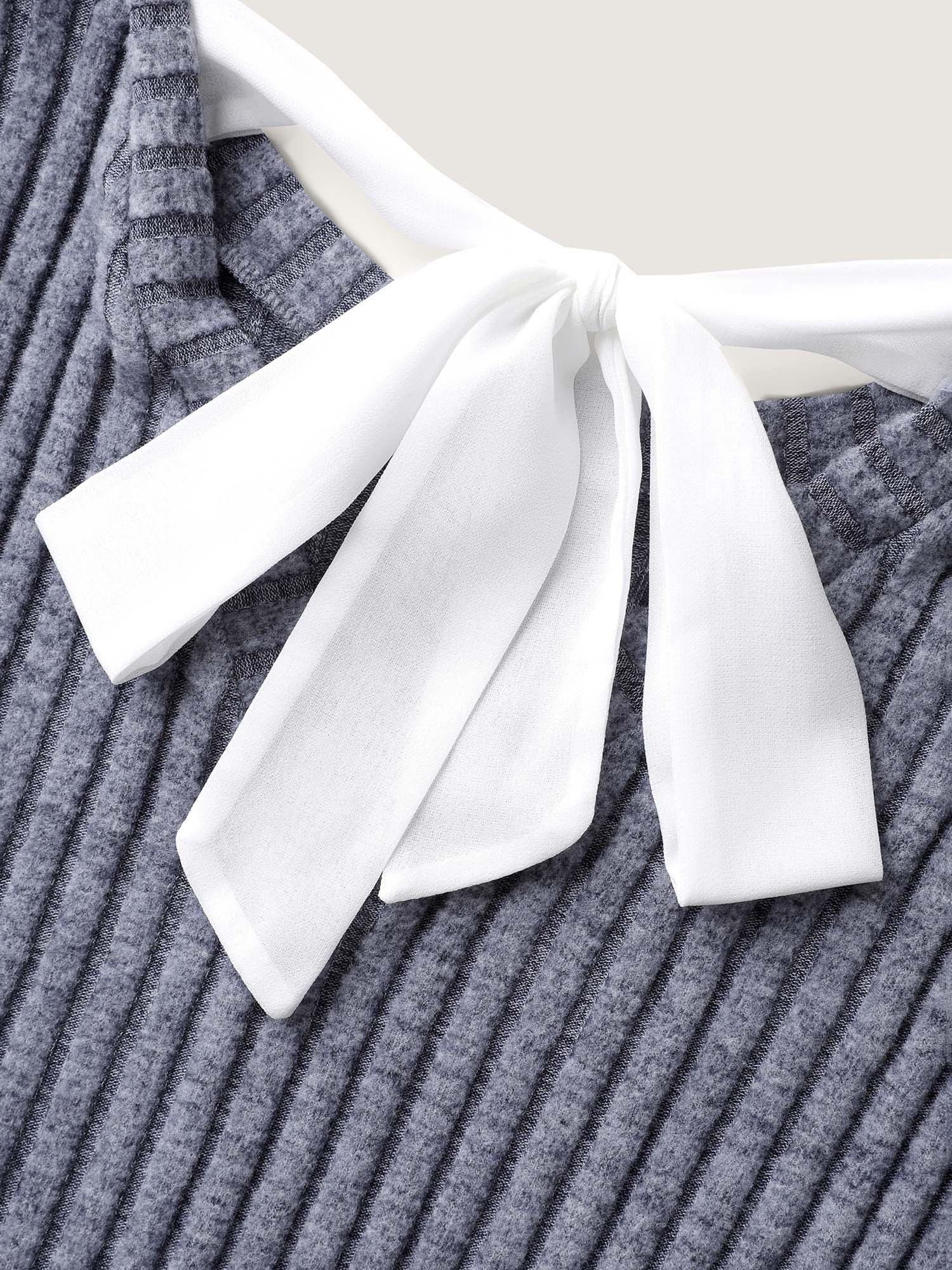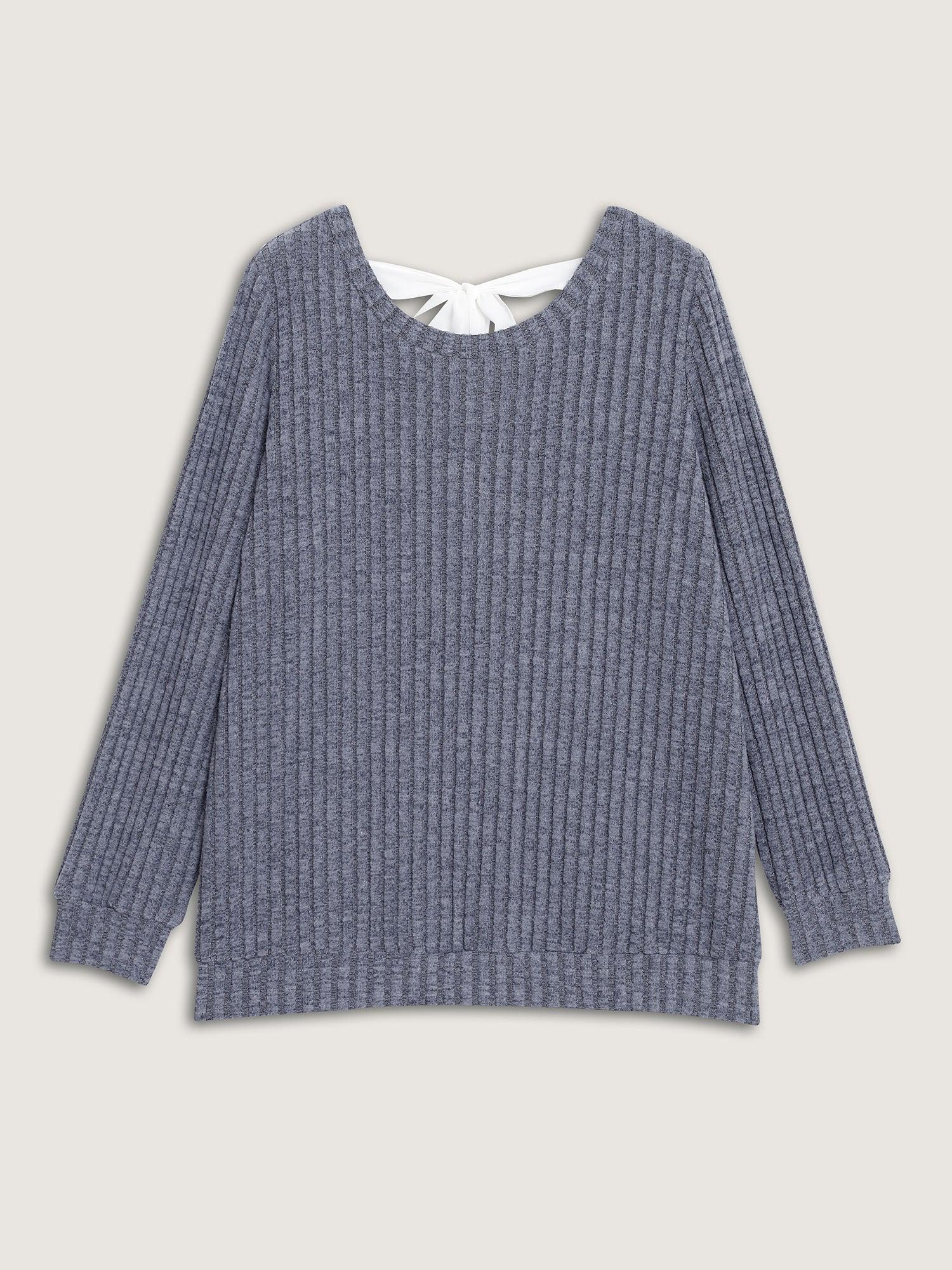 Back-Tie Ribbed Round Neck Sweatshirt Female