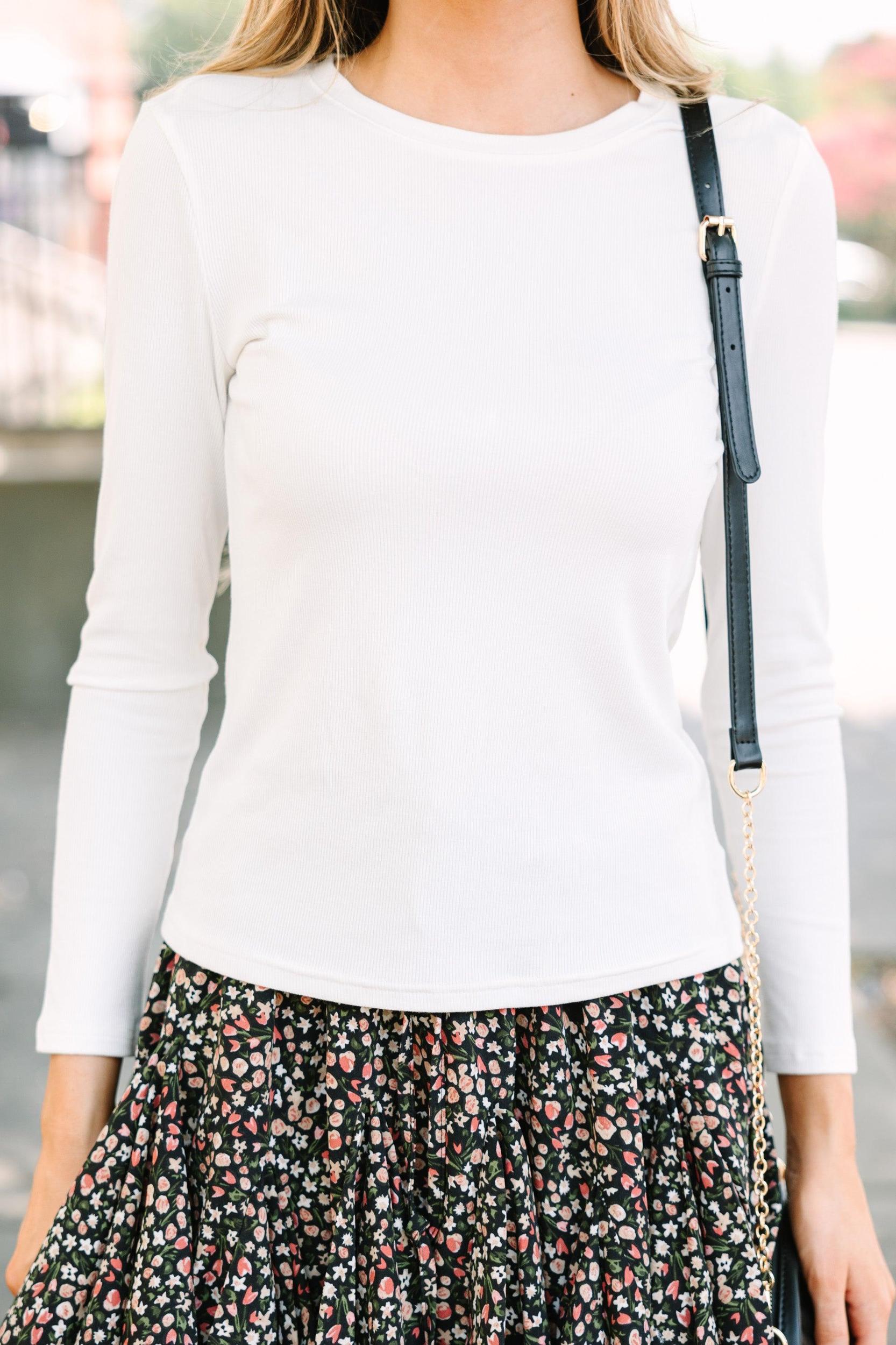 This is the perfect basic long sleeve top! The ribbed knit fabric is so stretchy and we love its slim fit. It makes it so easy to layer and style from now through winter! Round neckline Long sleeves Ribbed knit fabric Fitted Generous stretch London is wearing the small.