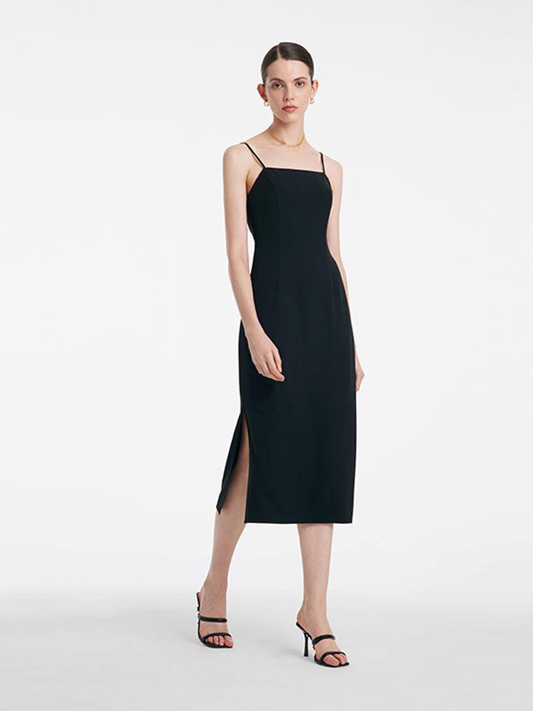 -With detachable bra pads -Workwear -Soft and comfortable The dress features a comfortable and breathable fabric, providing a smooth, cool, and pleasant sensation against the skin. The spaghetti strap design adds an element of ease and elegance, perfectly showcasing the shoulder and necklines, exuding a sense of grace