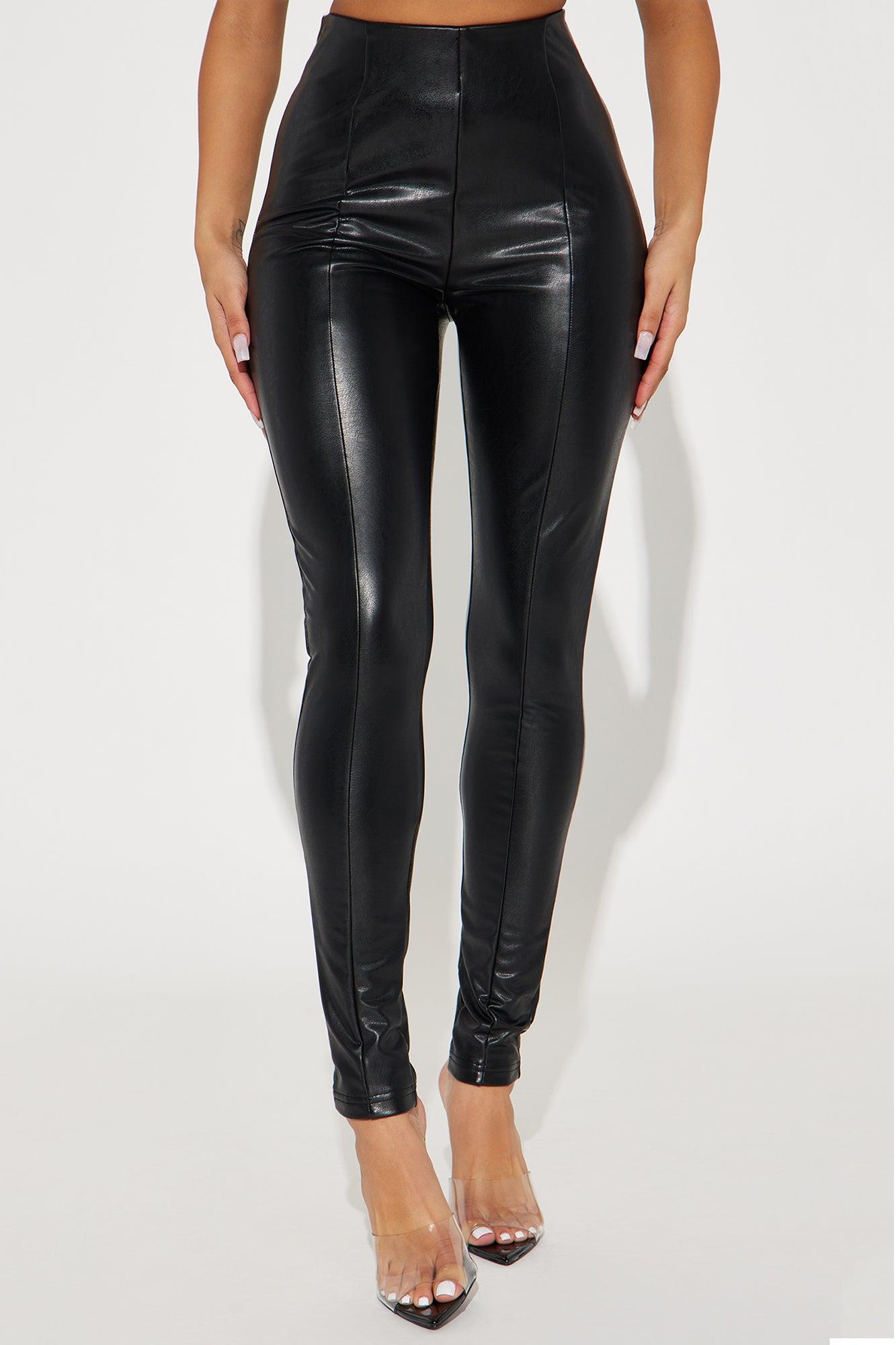 Available In Black, Ivory, And Cognac. PU Leggings High Waist Seam Details Elastic Waistband Stretch 29 Inseam Disclaimer: To Keep The Aesthetic Of This Garment, Please Follow The Care Instructions Carefully. Facing: 100% Polyurethane Backing: 95% Polyester 5% Spandex Imported California Proposition 65 WARNING: Cancer and Reproductive Harm - www.P65Warnings.ca.gov.