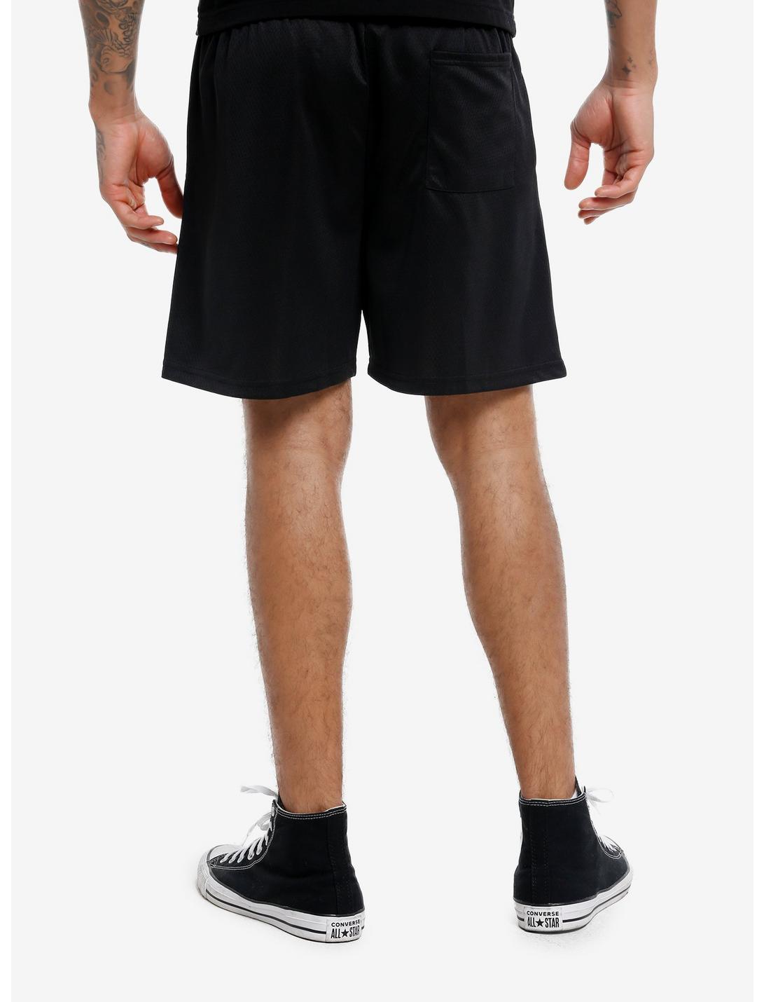 When you're not in the pit at a Bad Omens show, you gotta chill. Grab these Bad Omens mesh basketball-style shows with the band's jagged logo printed across the front. Side pockets, a back pocket and elasticated, drawstring waistband.100% polyesterWash cold; dry lowImportedListed in men's/unisex sizesModel is 6'1"Model wears size Medium