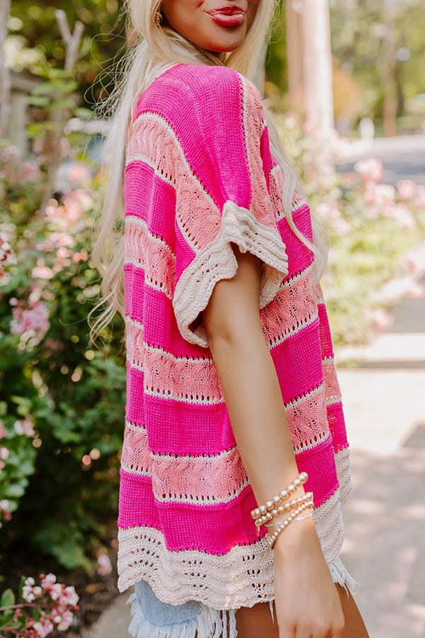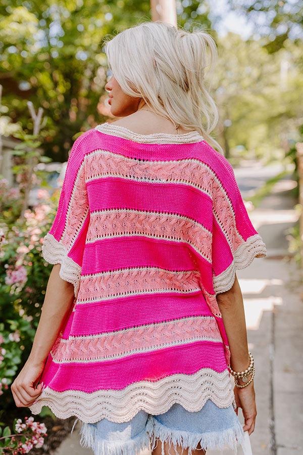 - Keep it sweet from the café to the coastline in this adorable knit top! Its delightful neutral and pink-hued stripe pattern is sure to brighten up your day, while the scalloped detailing adds a playful touch. Its relaxed fit makes it super comfy and perfect for any casual occasion, whether you are out for a day with friends or just relaxing on the patio. - Unlined loose knit material with an oatmeal and pink hued striped pattern - A scalloped round neckline - Short sleeves with scalloped cuffs - A relaxed silhouette that ends in a scalloped hemline