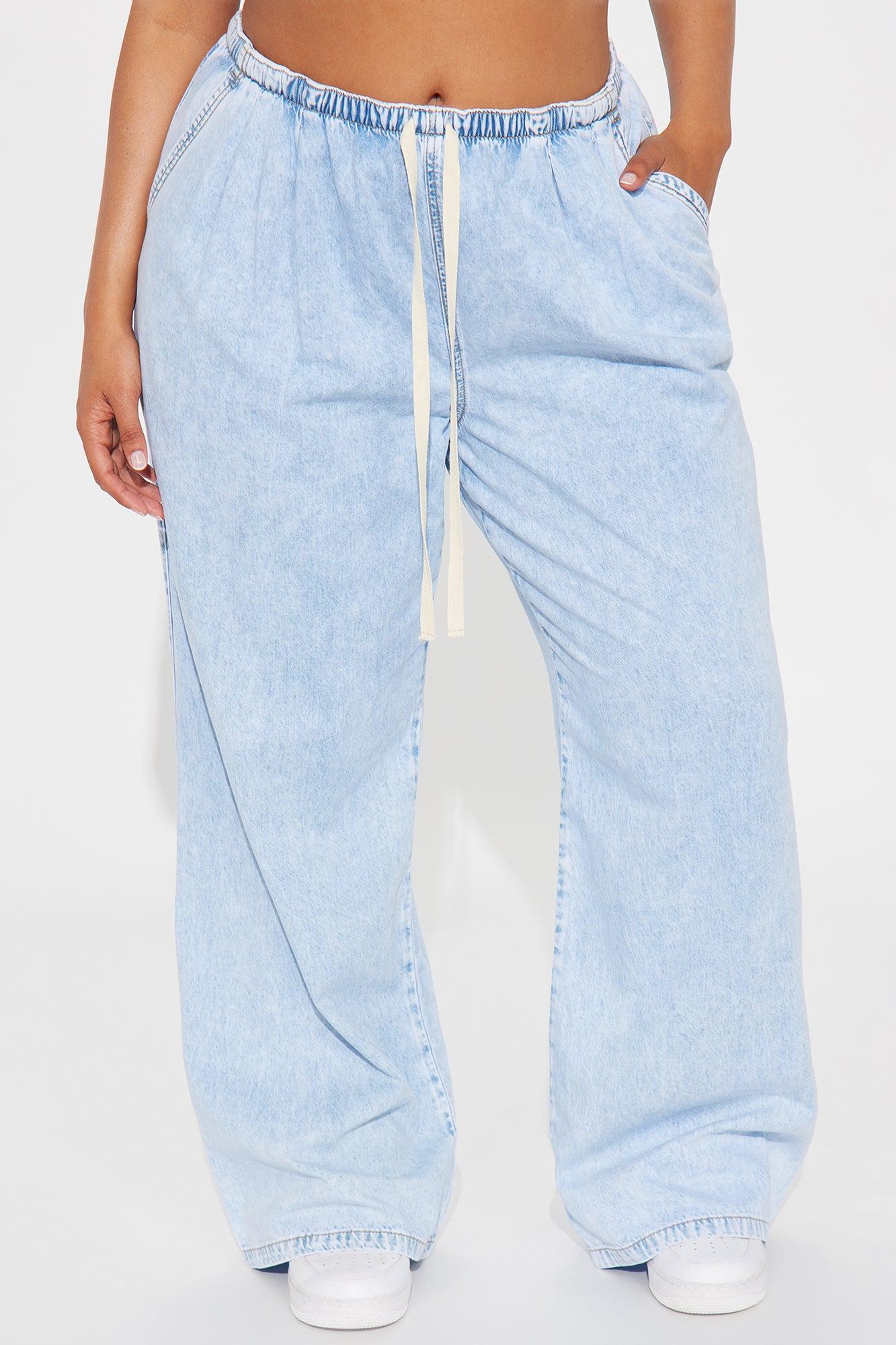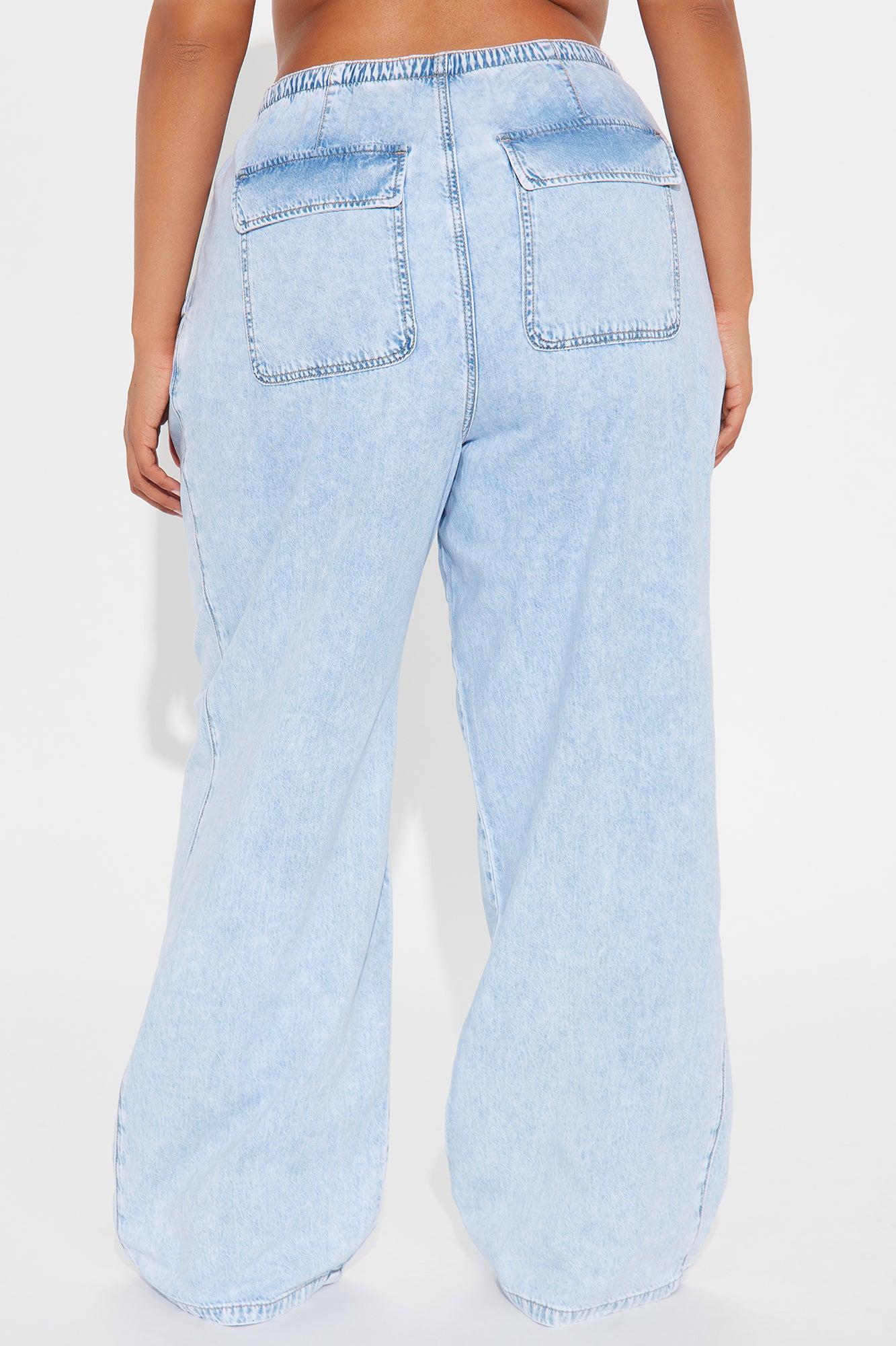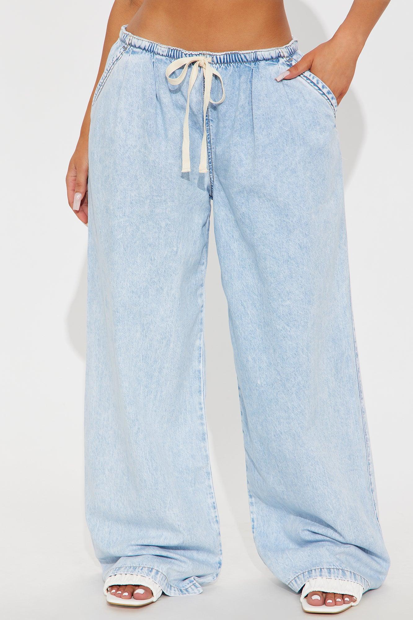 Baeside Tie Waist Wide Leg Jeans - Light Wash Female