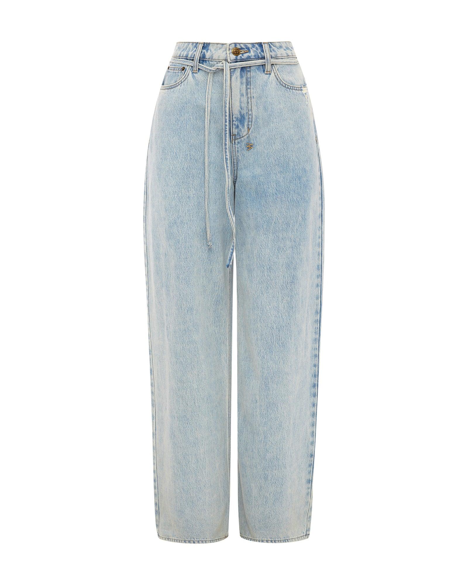 The Baggy Jean Rollin is a relaxed wide leg jean with a mid-rise and a detachable shoelace-style belt. Made from premium rigid denim in a soft blue hue.Featuring classic five-pocket styling, anti-silver Ksubi branded hardware, T-box and 3x4 embroidery, and a removable pocket tag on the wearer's right back pocket.