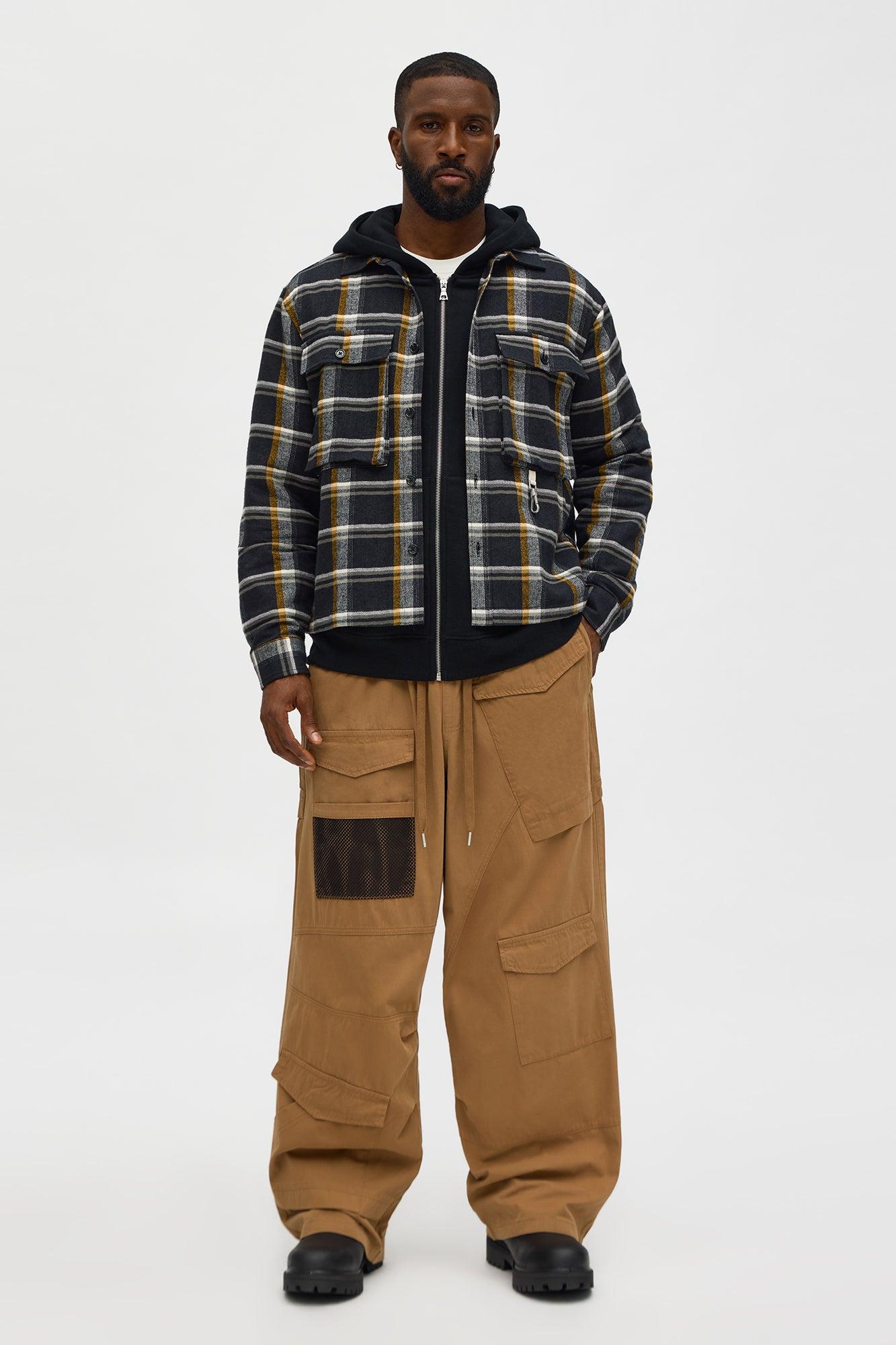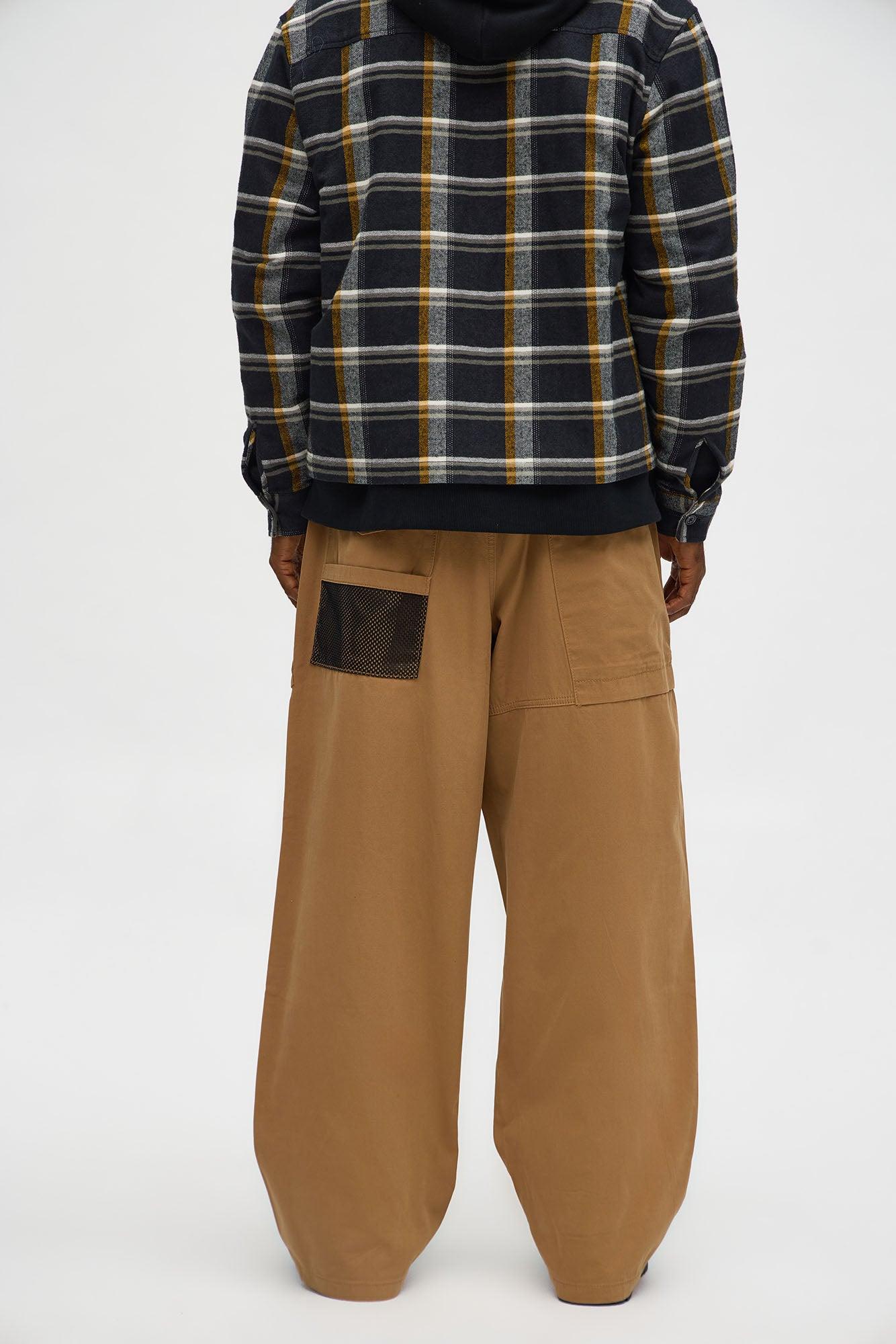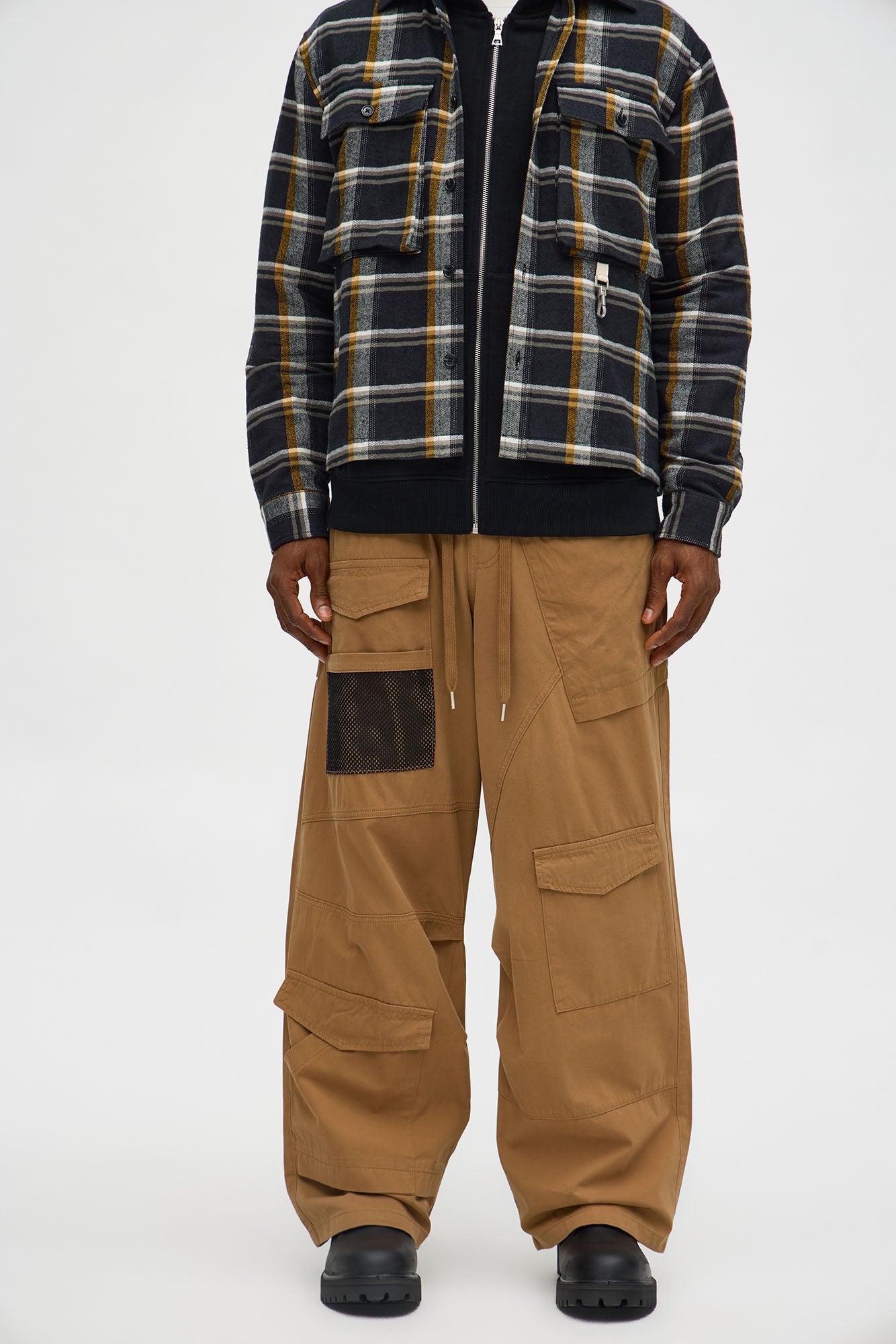 Available In Brown. Baggy Fit Elastic Waist Drawstring Side Hand Pockets Cargo Pockets 100% Cotton Imported