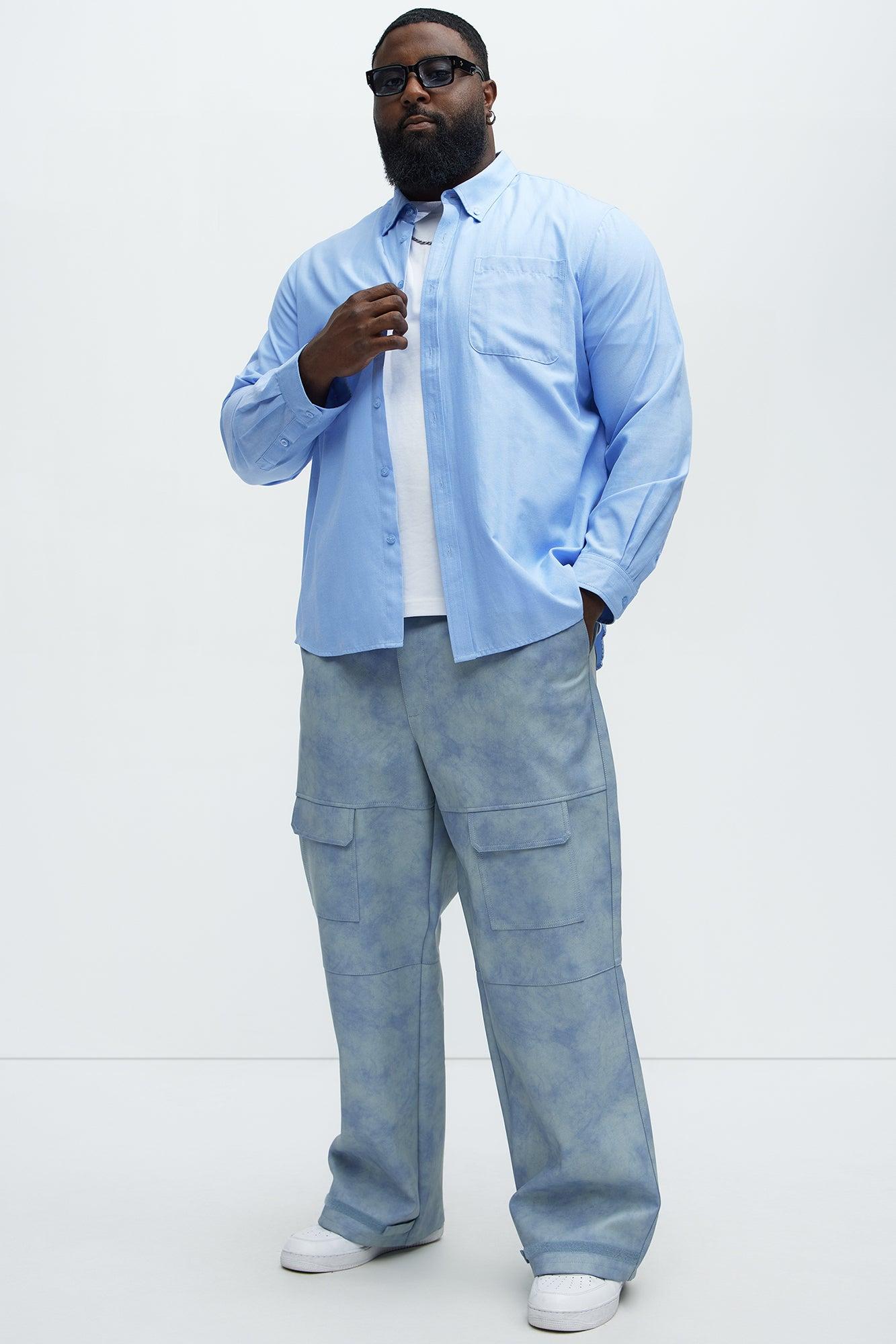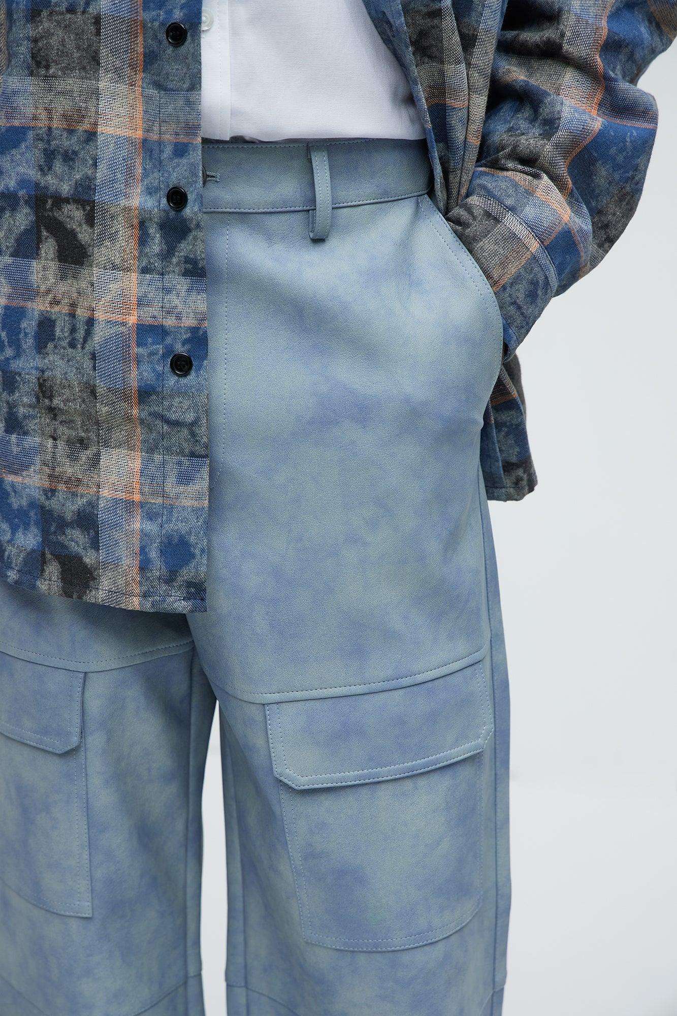 Available In Blue. Baggy Fit Button Closure Zip Fly Cargo Pockets Side Pockets Functional Velcro Detail At Leg Opening Shell Coating: 100% Polyurethane Backing: 80% Polyester, 20% Viscose Disclaimer: To Keep The Aesthetic Of This Garment, Please Follow The Care Instructions Carefully. Imported California Proposition 65 WARNING: Cancer and Reproductive Harm - www.P65Warnings.ca.gov.