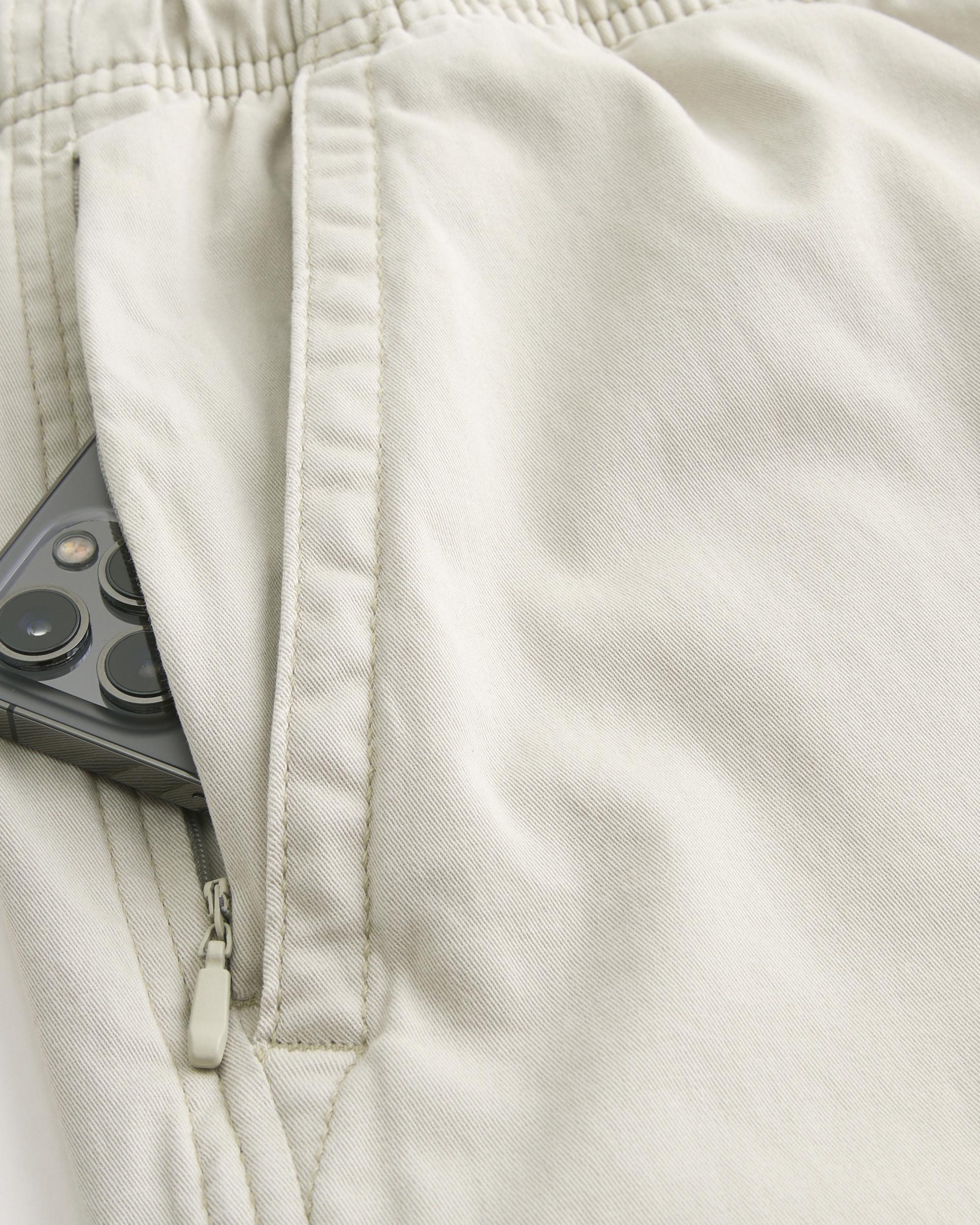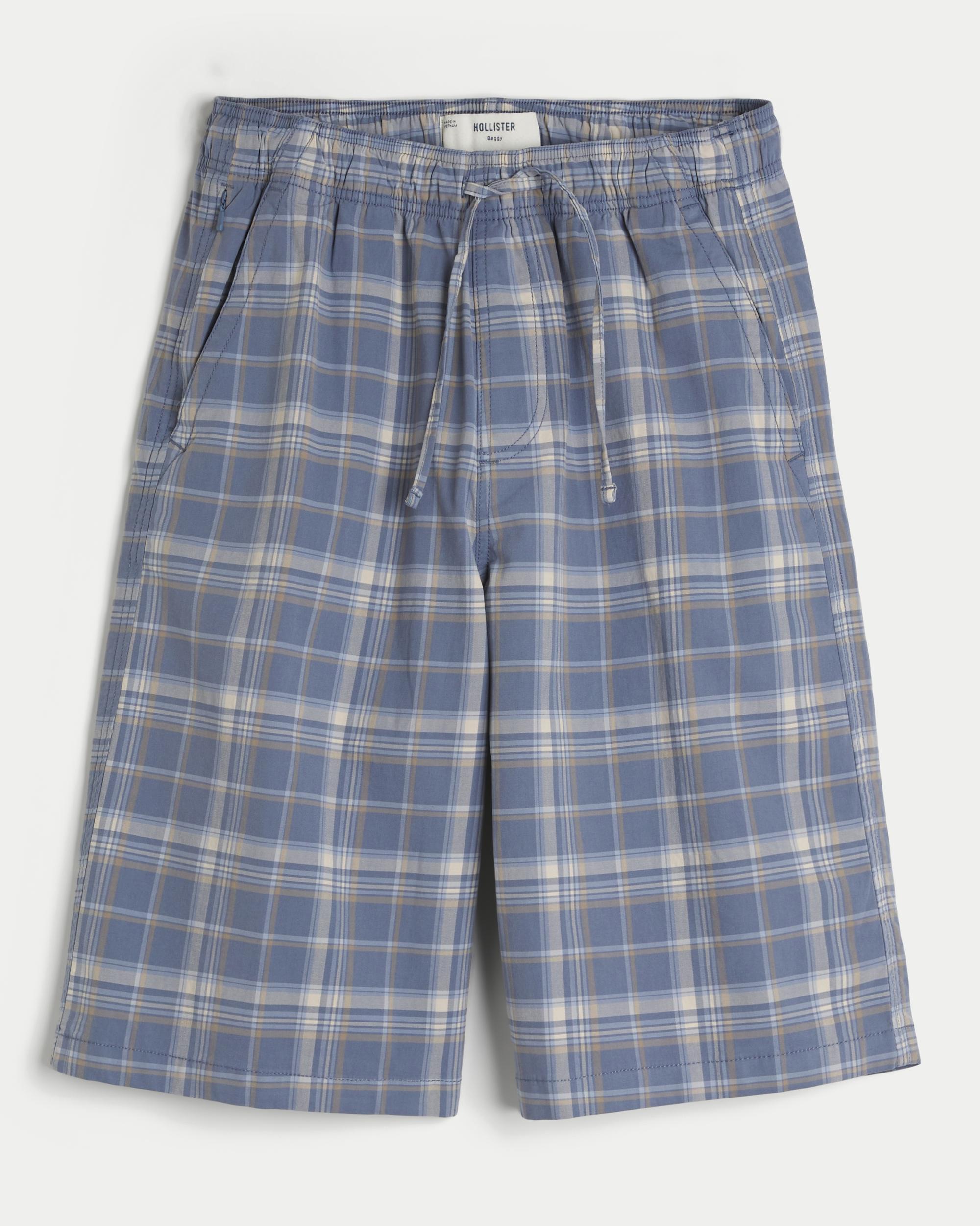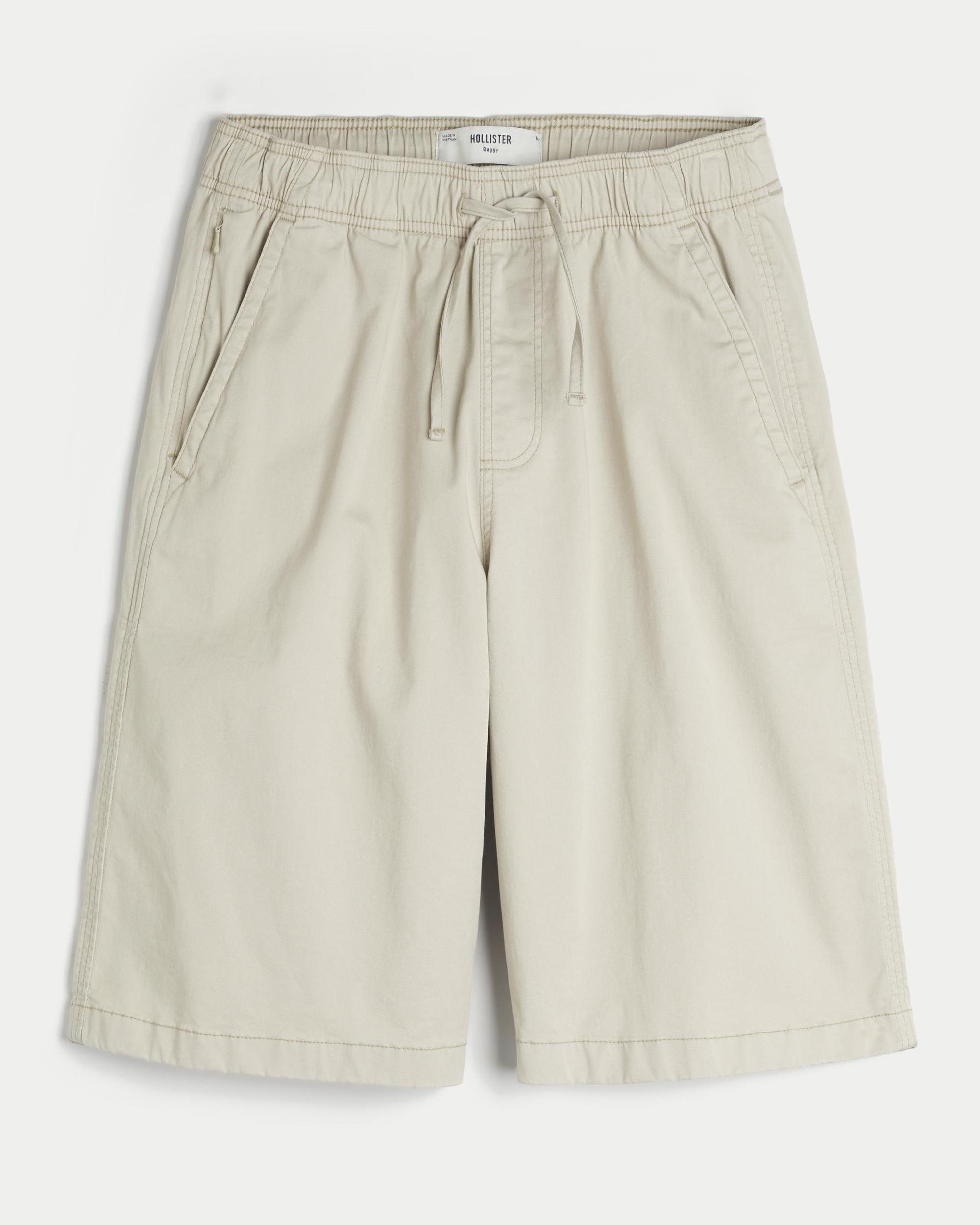 Comfortable shorts designed with a baggy fit and pull-on drawstring waist. Pockets, right zipper pocket. Below-the-knee length.