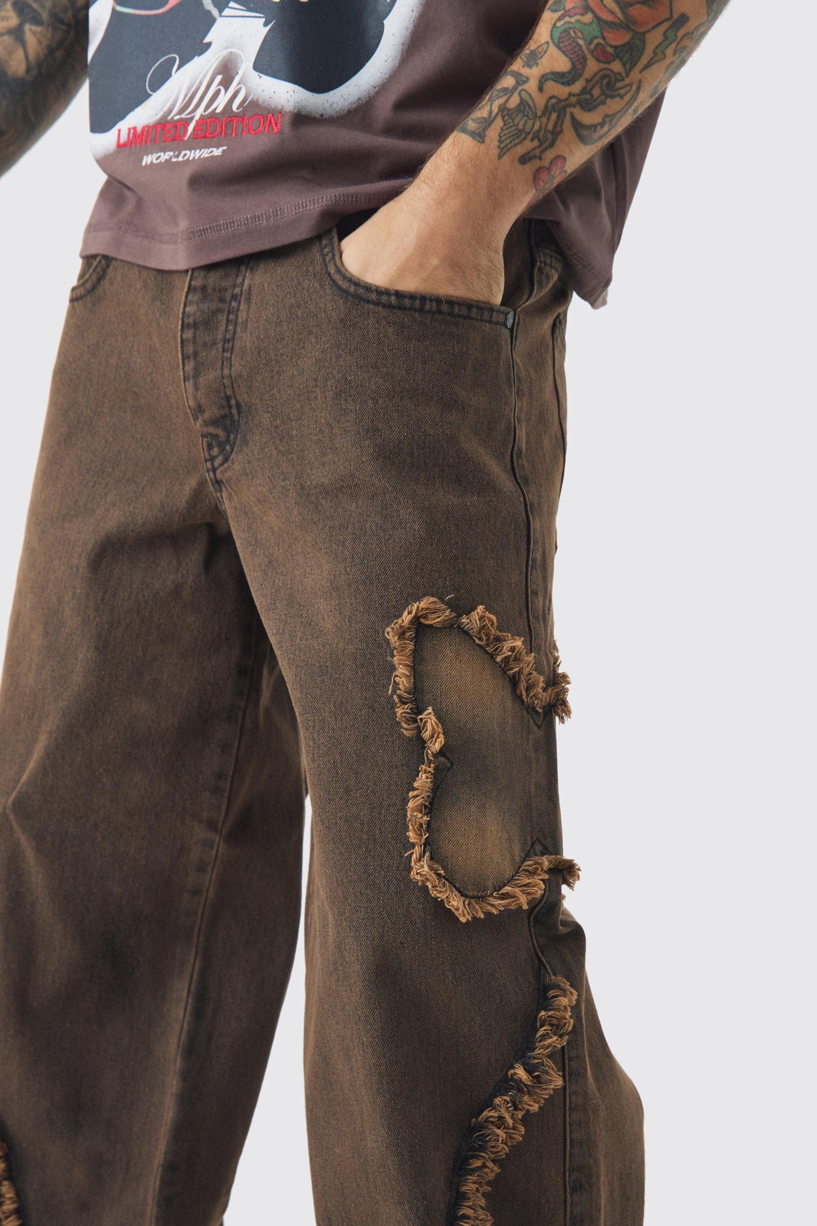 Baggy Rigid Butterfly Applique Washed Denim Jeans | boohooMAN USA