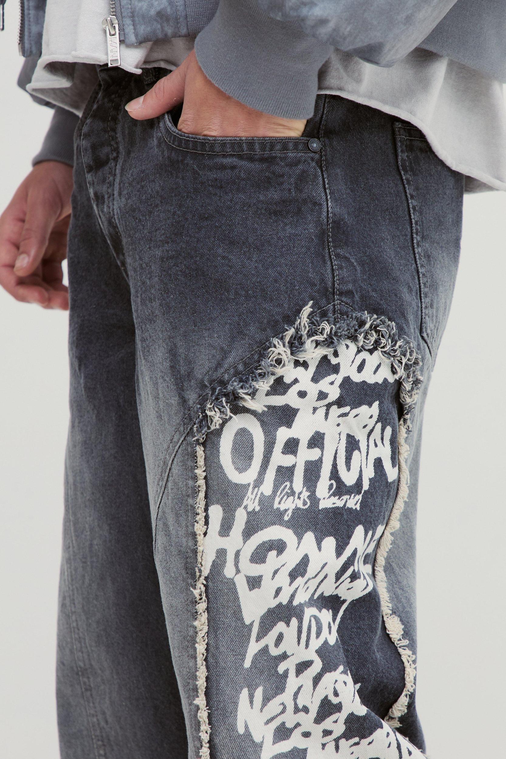 Baggy Rigid Printed Panel Denim Jeans | boohooMAN USA