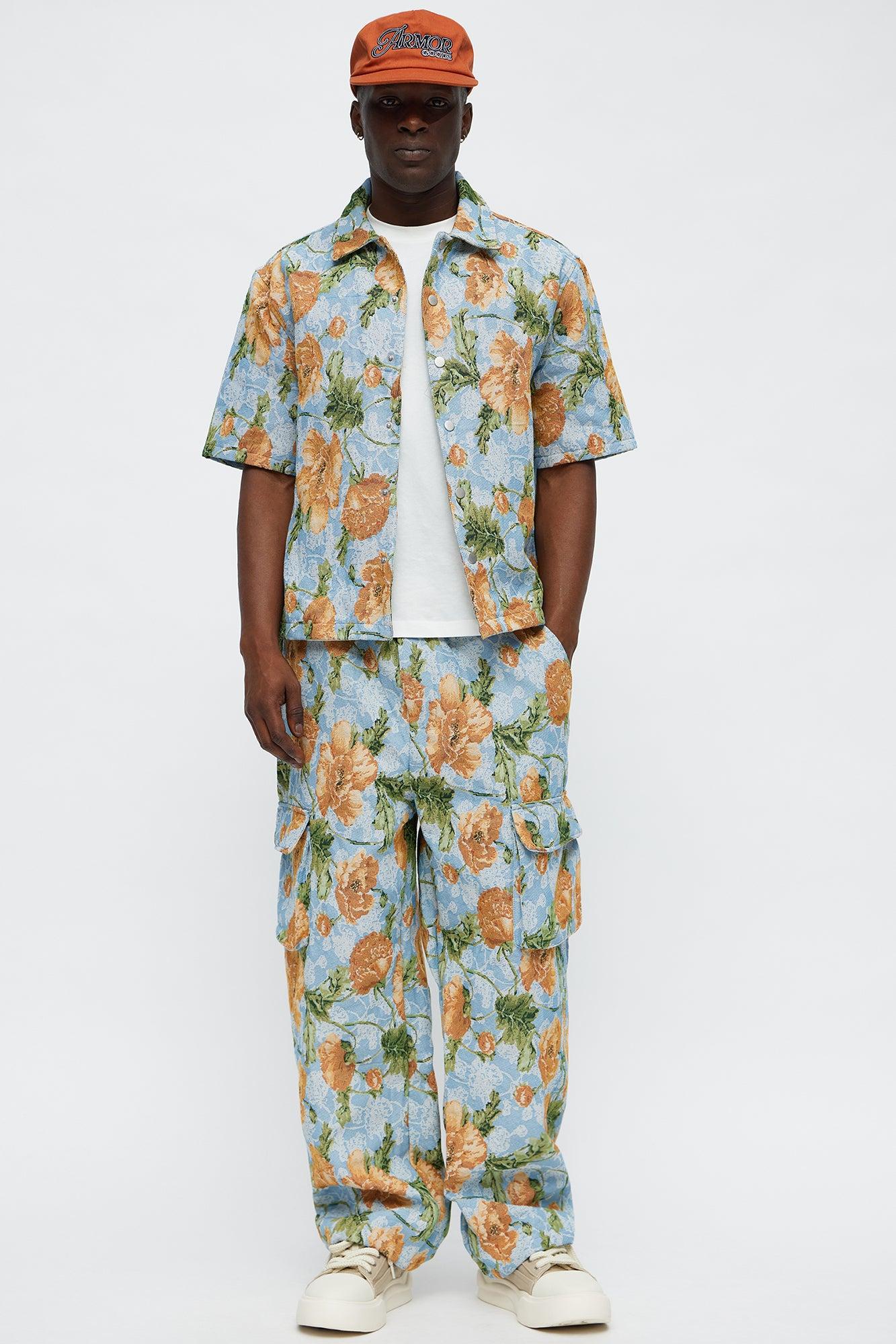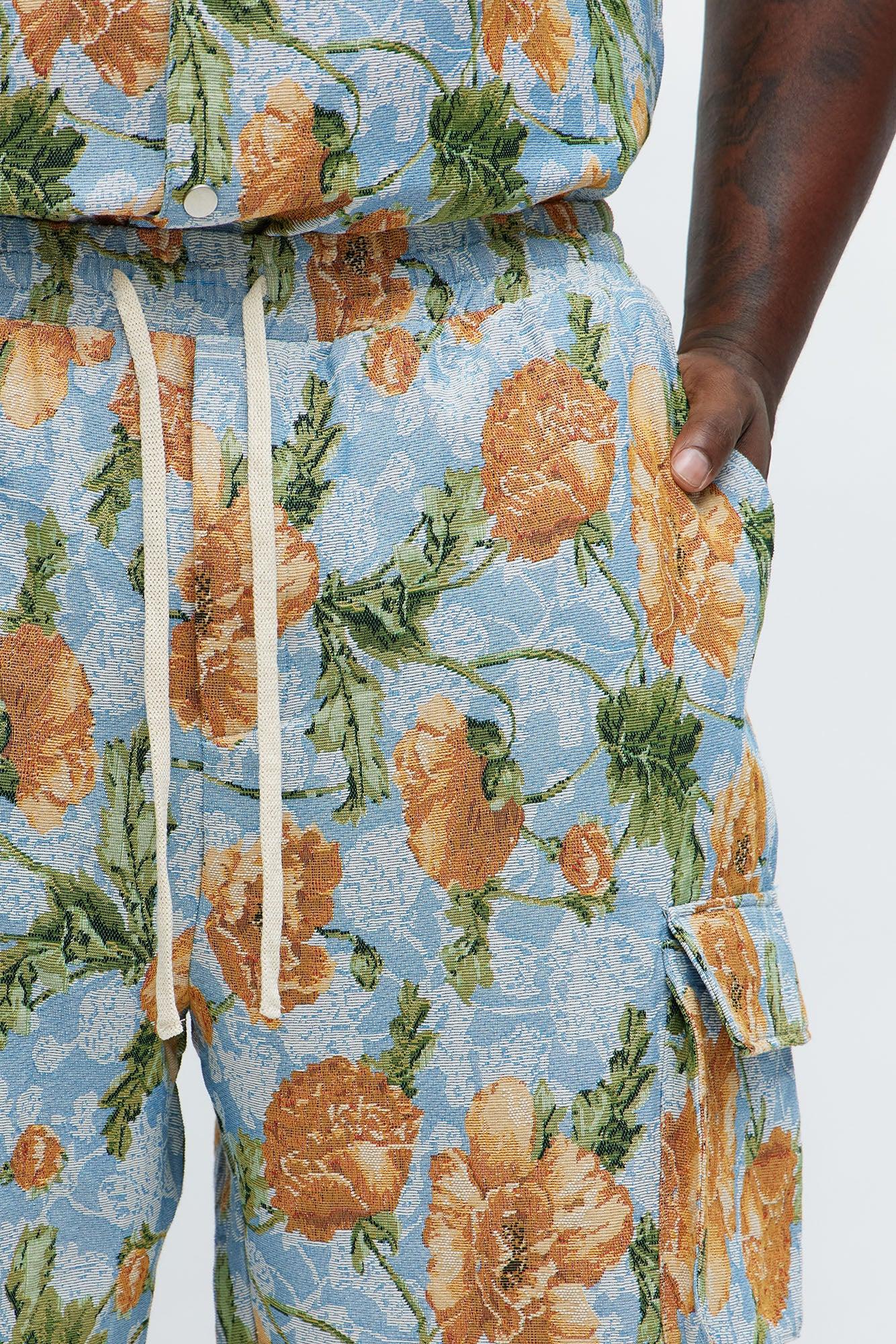 Available In Blue/combo. Baggy Fit Elastic Waist Drawstring Side Hand Pockets Cargo Pockets Pair With "Rose Buds Tapestry Button Up Shirt" Disclaimer: Print Placement May Vary 80% Polyester 20% Cotton Imported California Proposition 65WARNING: Cancer and Reproductive Harm - www.P65Warnings.ca.gov.