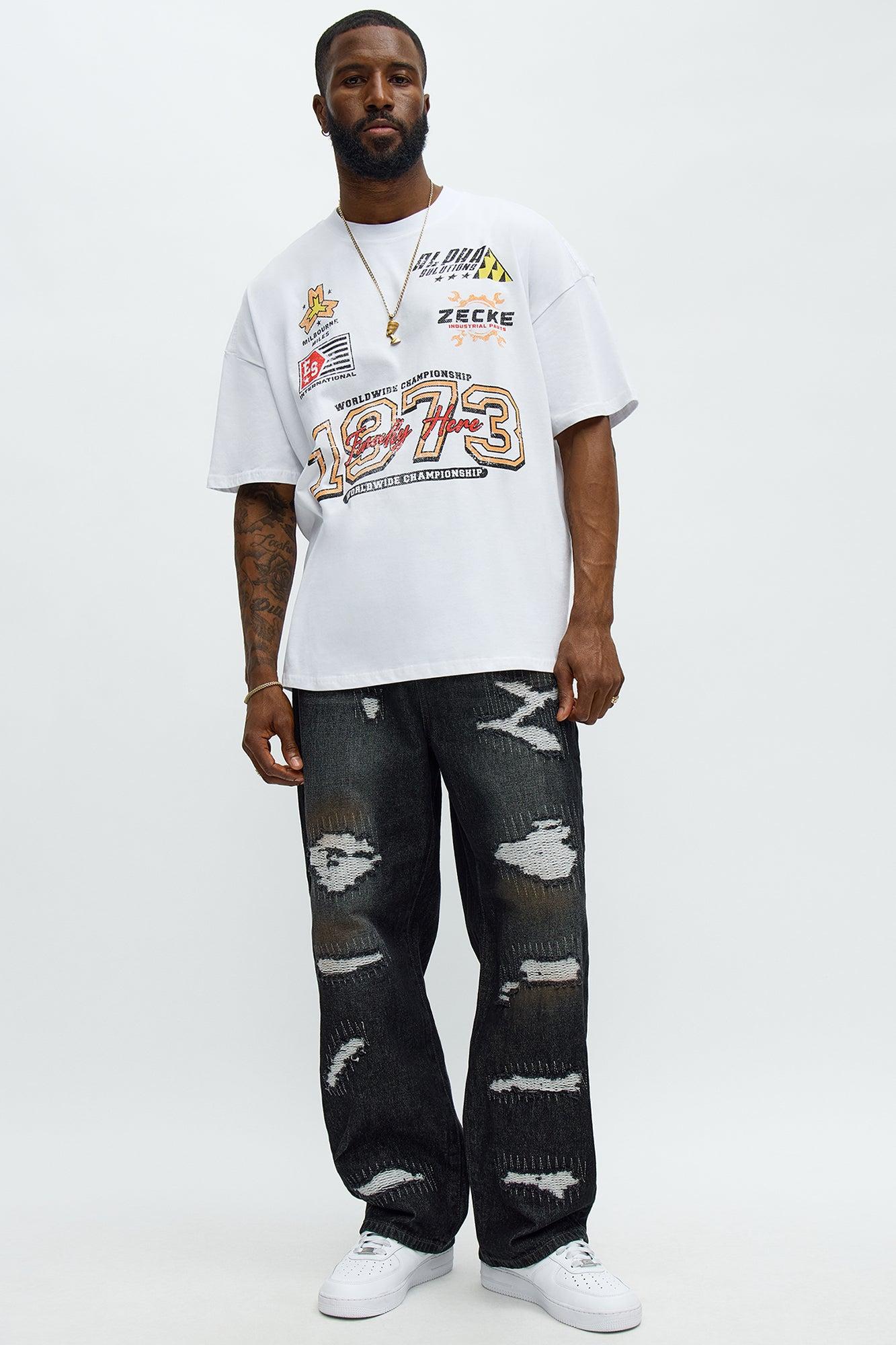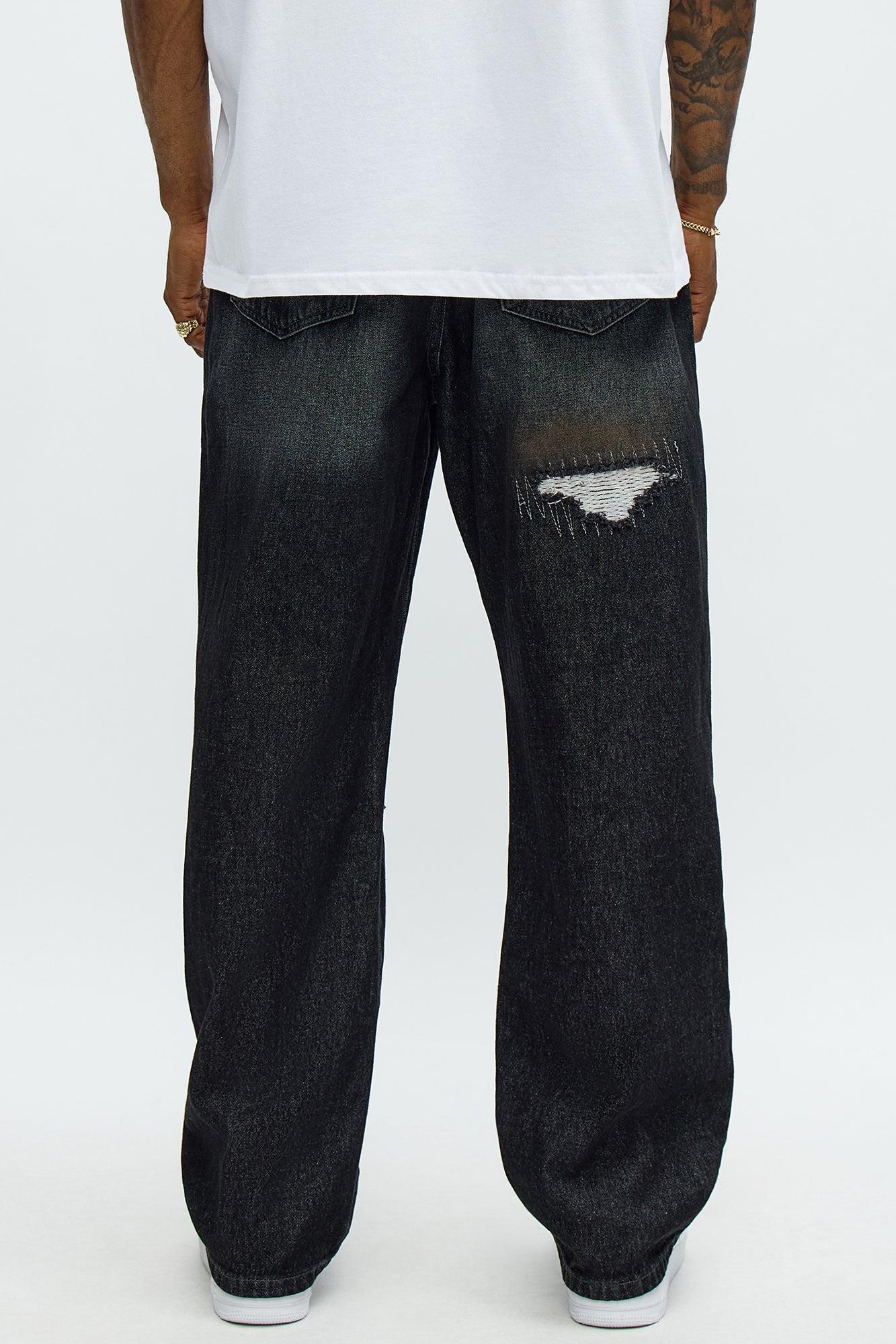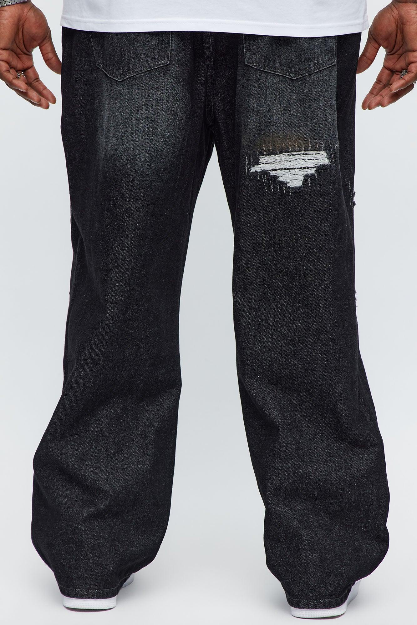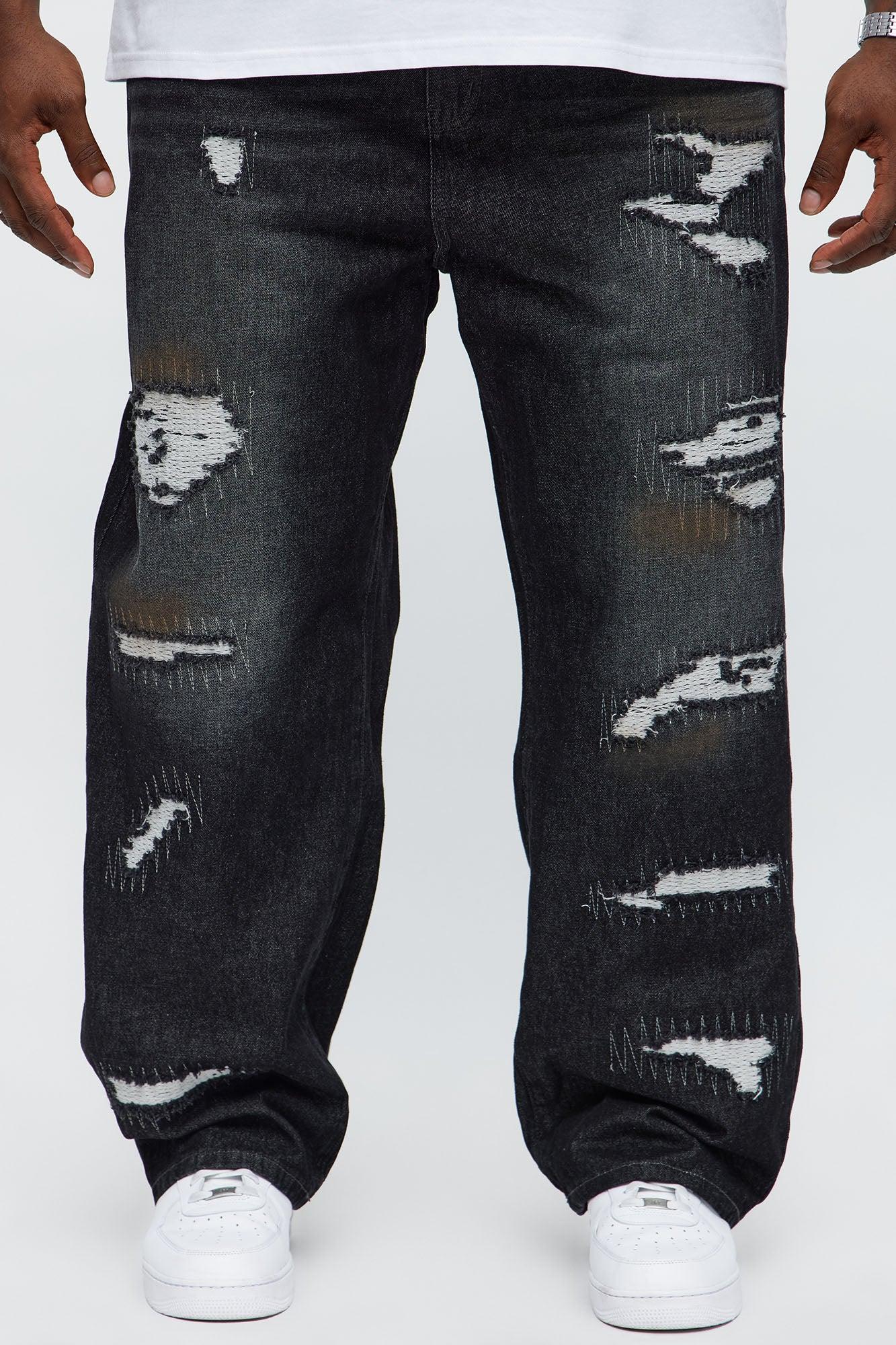 Baggy Vandal Stitch Distressed Jeans - Black Wash Male