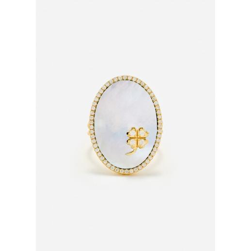 BAGUE MÉDAILLON TRÈFLE NACRE OR JAUNE