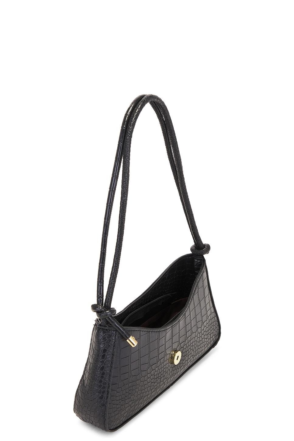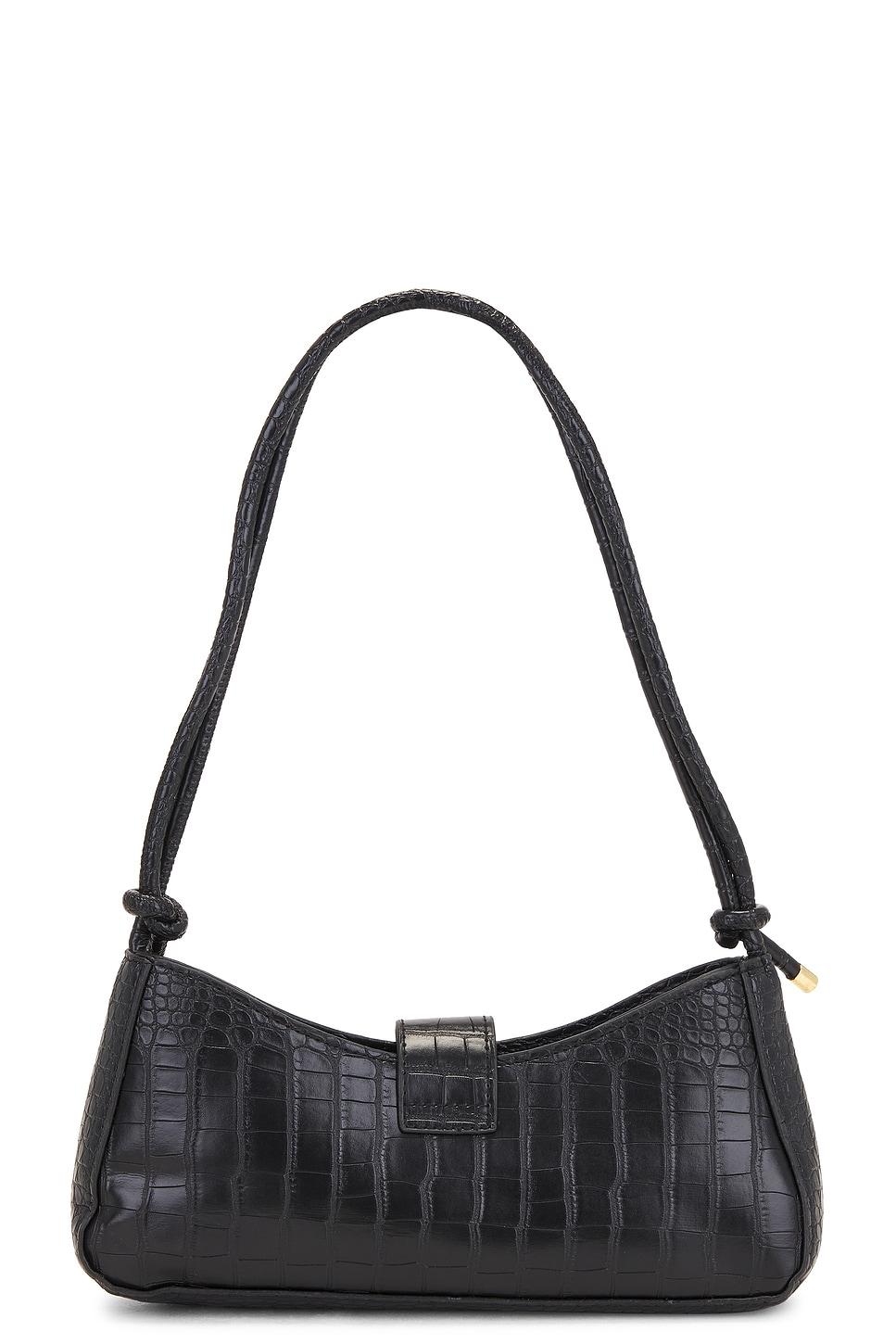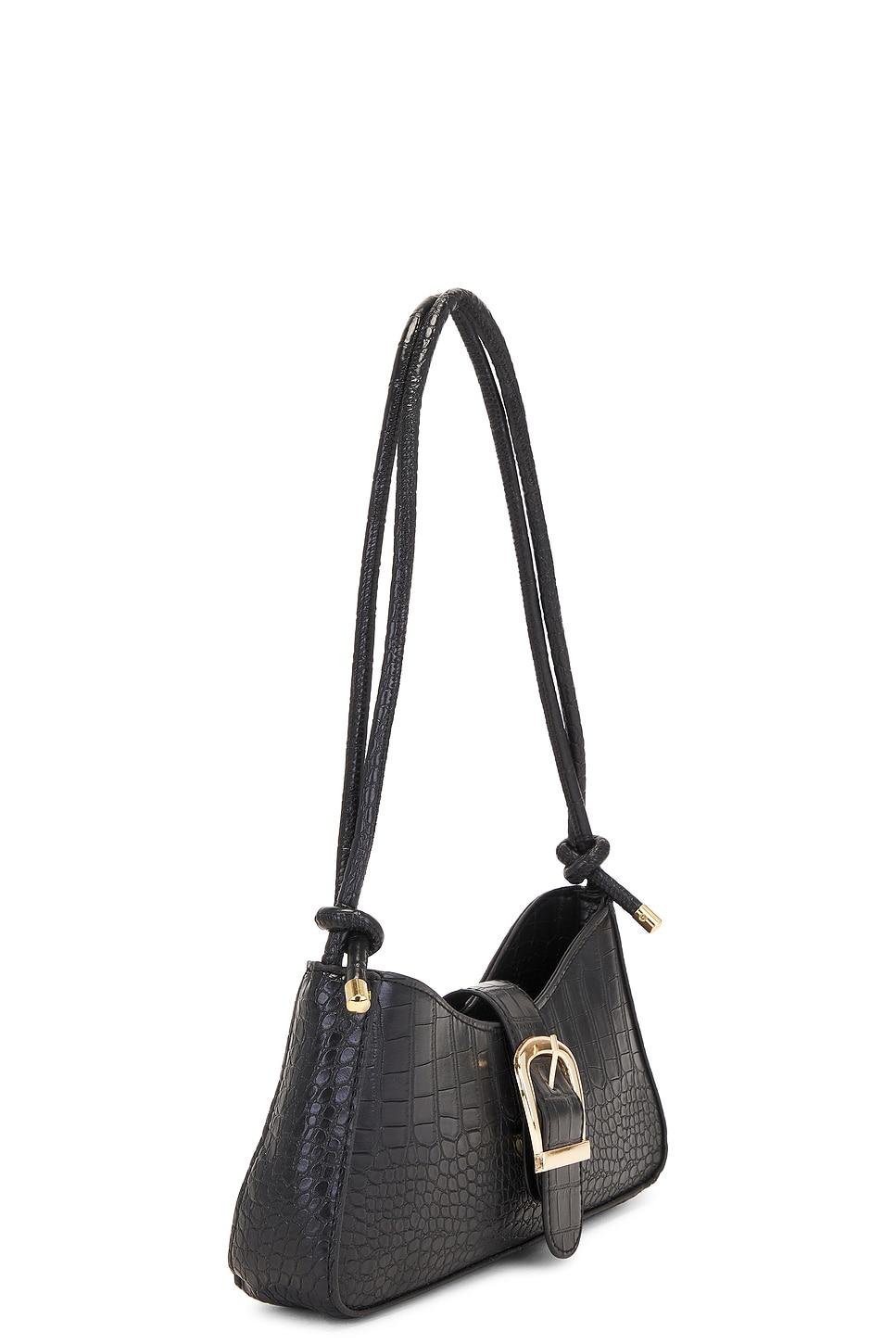 Croc embossed faux leather exterior with textile lining. Imported. Top zipper with foldover buckled strap and magnetic closure. One main compartment. Strappy integrated shoulder strap. Measures approx 11.25" W x 4.25" H x 2.25" DShoulder strap with a 13" drop. Revolve Style No. 8OTH-WY157. Manufacturer Style No. 8ORBB14.