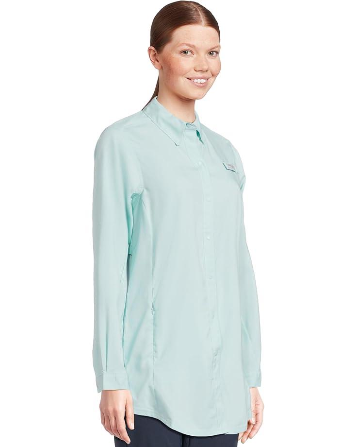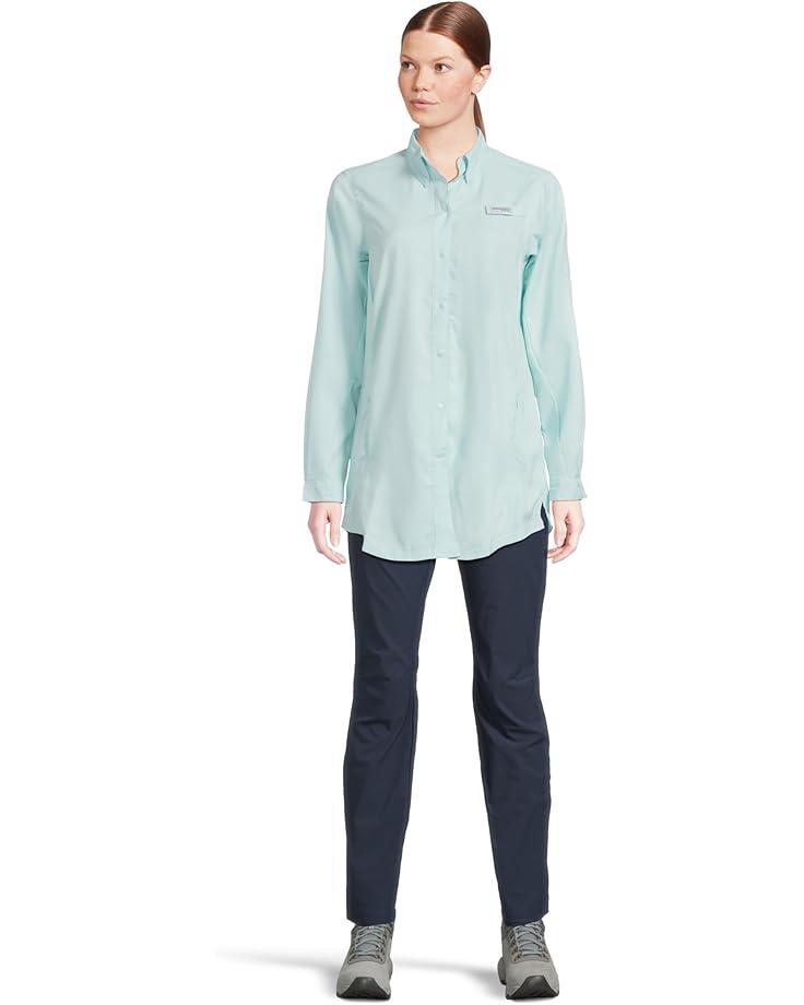 A must-have for the warm weather, the Columbia® Tamiami™ Long Sleeve Tunic is sweat-wicking and sun-shielding, offering superior comfort and sun protection. The Omni-Wick™ technology wicks away moisture to keep you dry and cool on a hot day. This long tunic comes with a front buttoned closure, long roll-up sleeves, rod holder, and collared neckline. The Omni-Shade™ UPF 40 protection shields the skin against skin damage caused by UVA/UVB rays. Stay comfortable and protected wearing this long-sleeve tunic shirt.