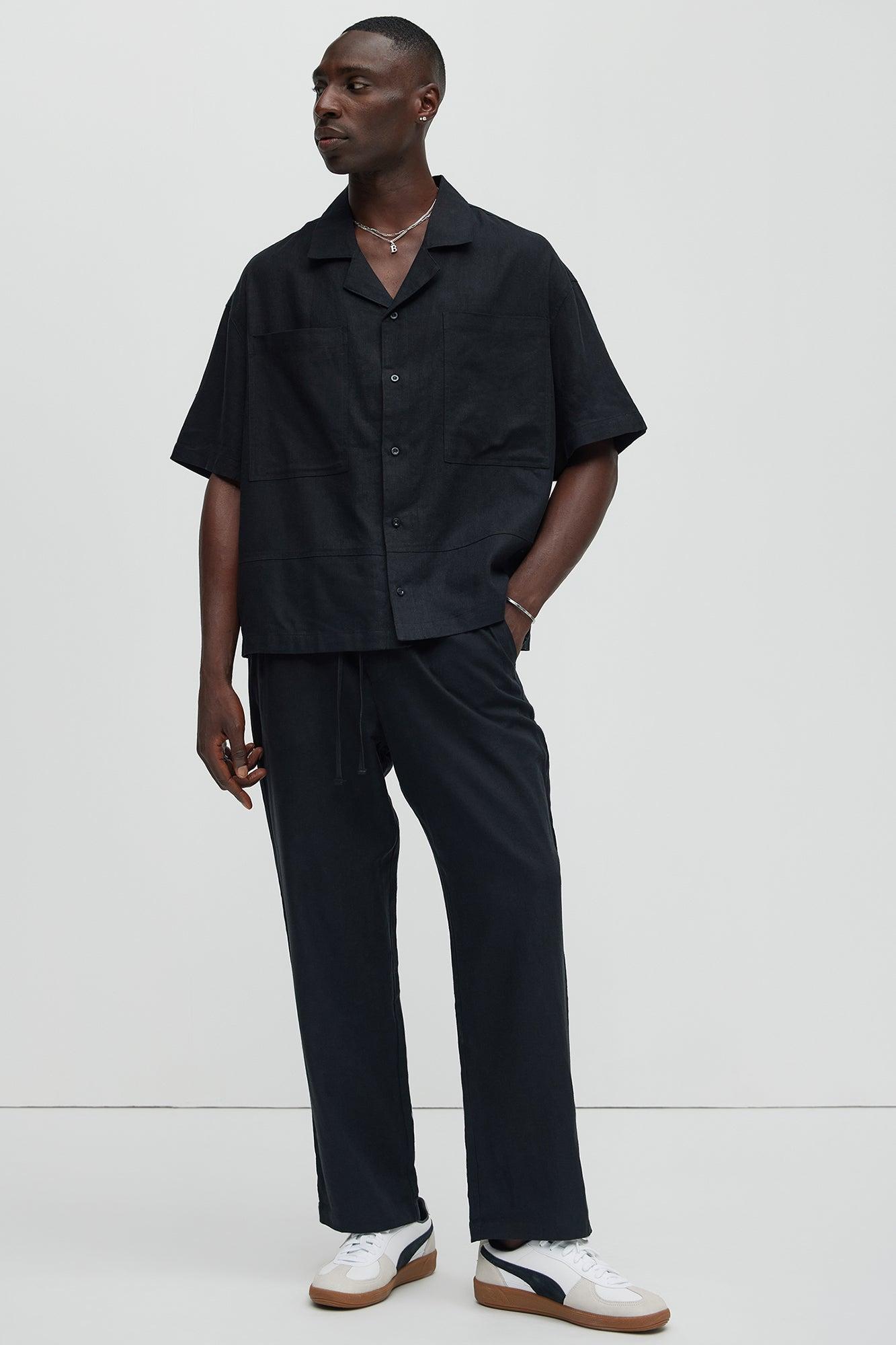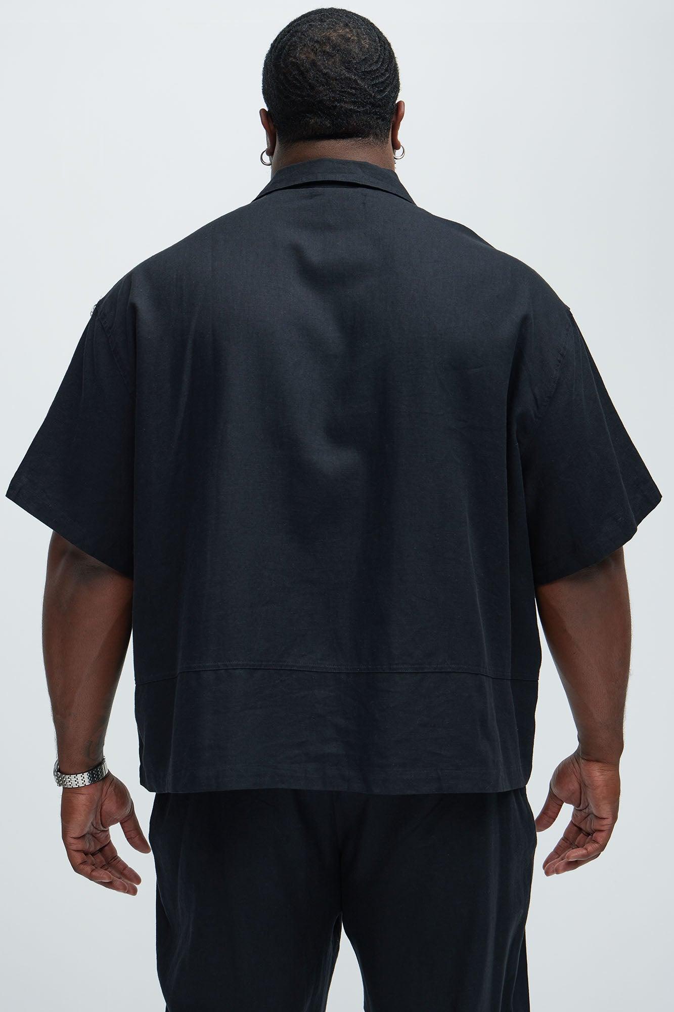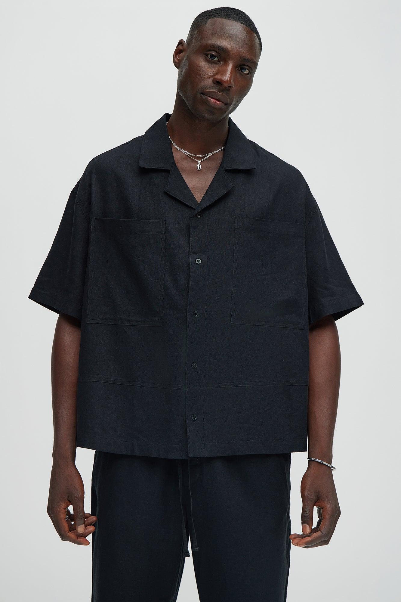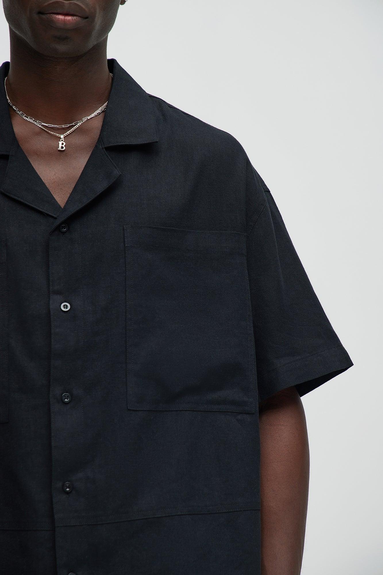 Bahamas Linen Cuban Boxy Shirt - Black