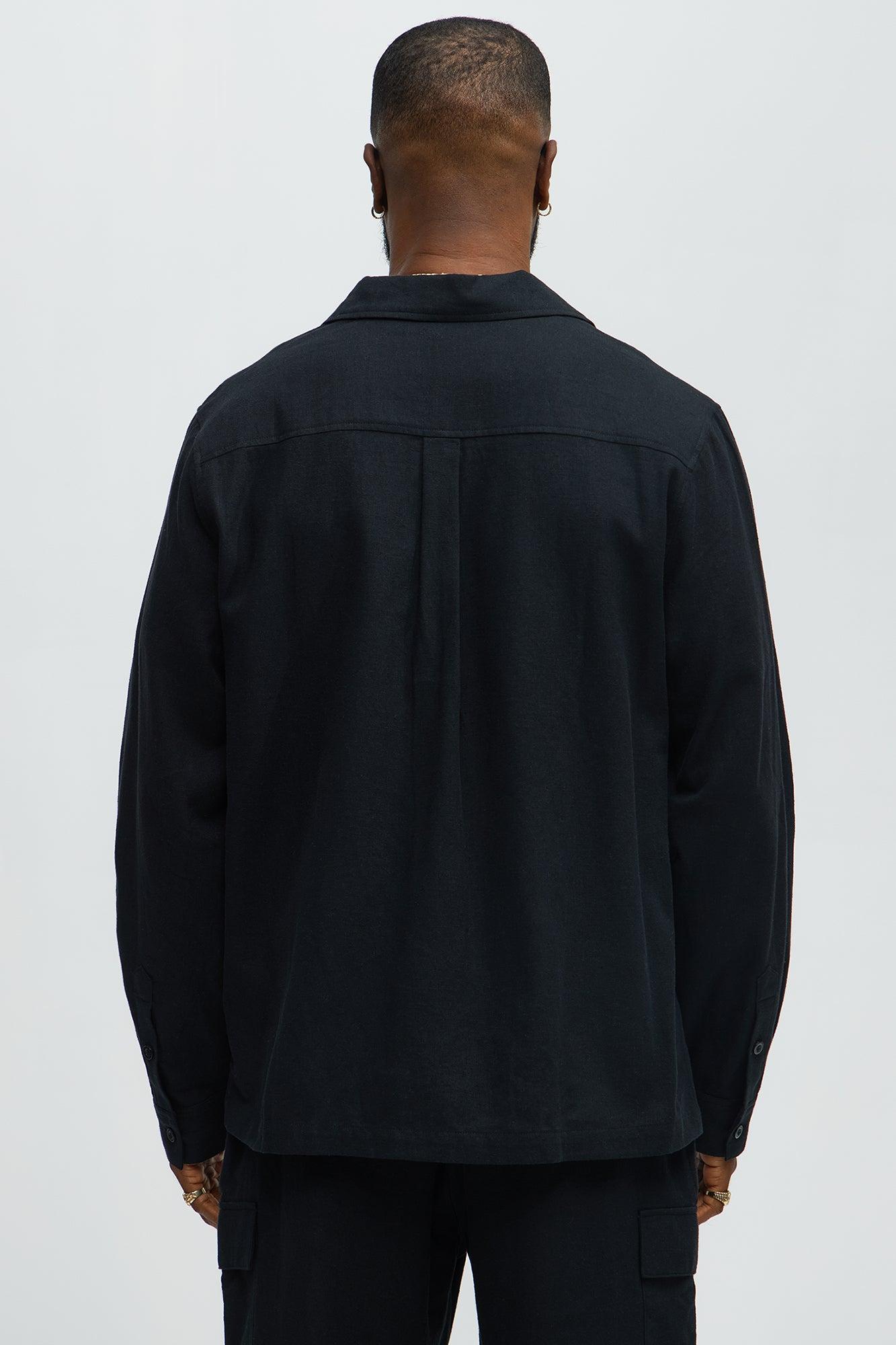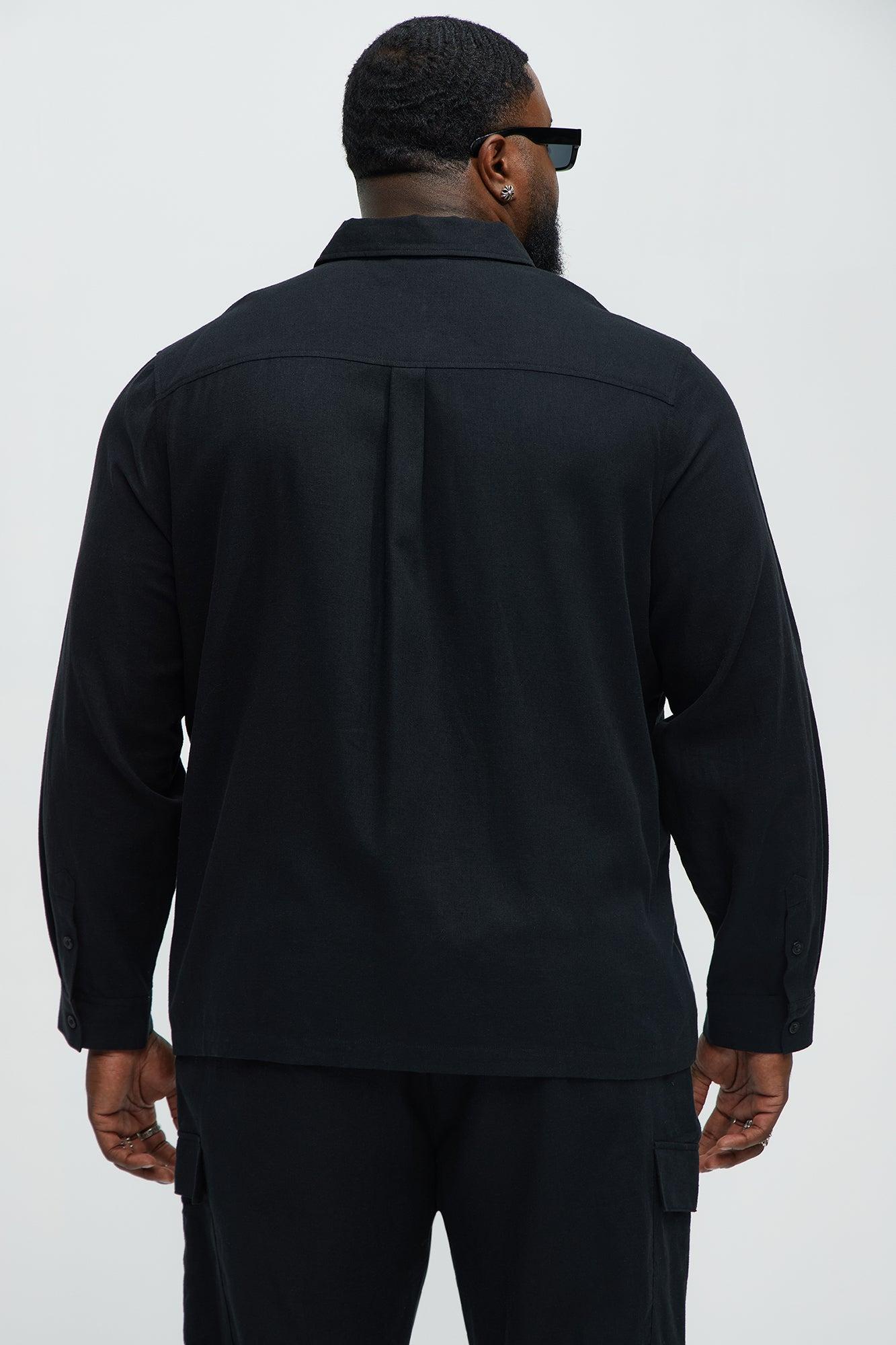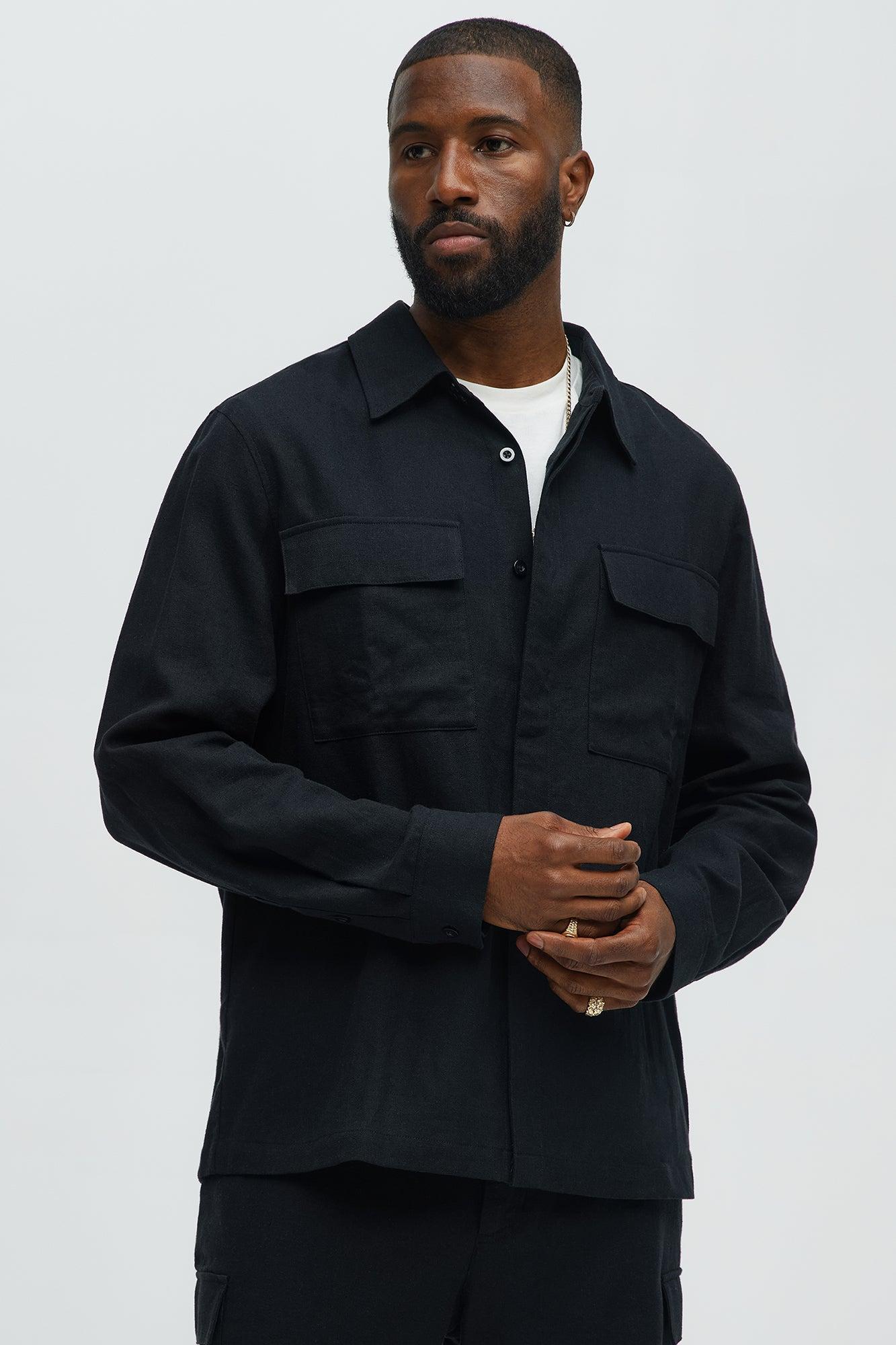Available In Black. Fold Down Collar Front Button Closure Two Chest Pockets Long Sleeves Front Button Closure Pair With "Bahamas Linen Shorts" Pair With "Bahamas Linen Slim E-Waist Pants" Pair With "Bahamas Linen Straight Cargo Pants" Shell: 55% Linen 45% Cotton Imported