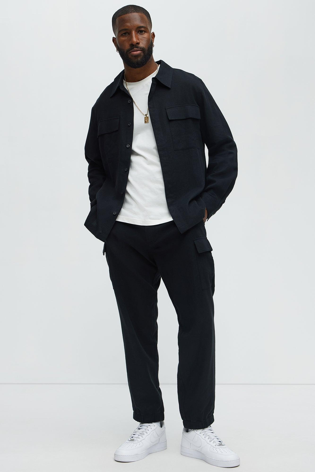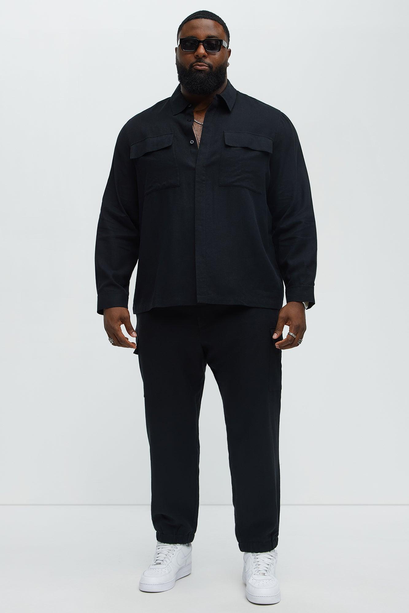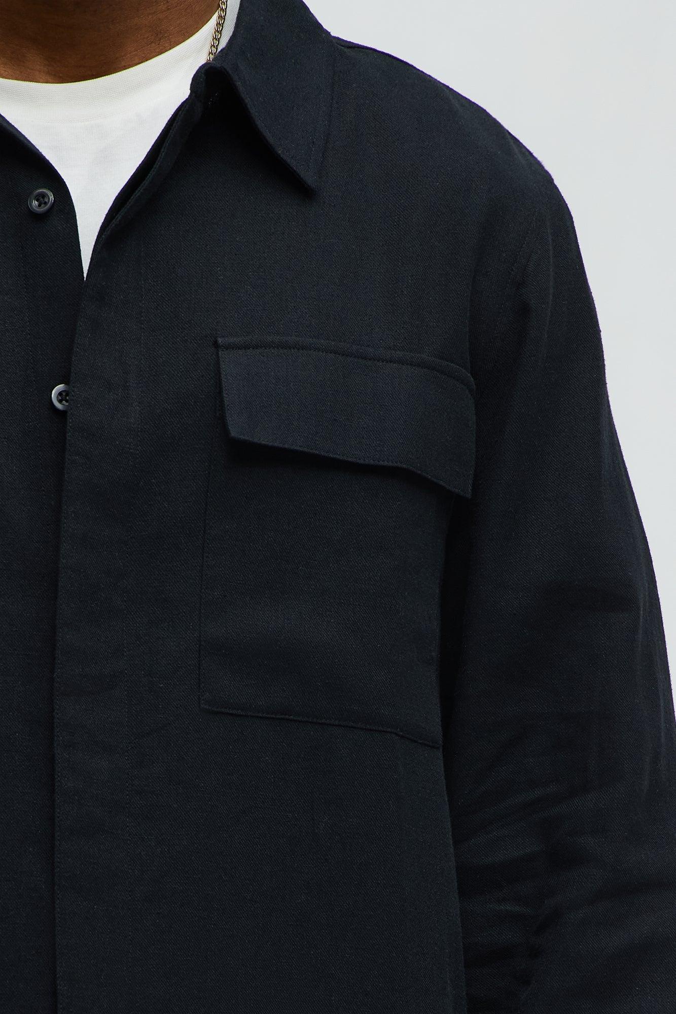 Available In Black. Fold Down Collar Front Button Closure Two Chest Pockets Long Sleeves Front Button Closure Pair With "Bahamas Linen Shorts" Pair With "Bahamas Linen Slim E-Waist Pants" Pair With "Bahamas Linen Straight Cargo Pants" Shell: 55% Linen 45% Cotton Imported