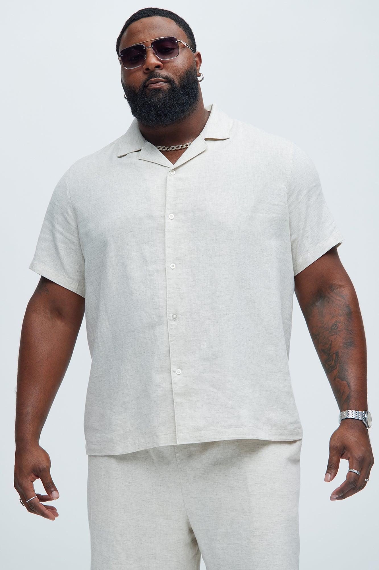 Available In Black, Ice Blue, Oatmeal, Rust, Stone And White. Fold Down Collar Front Button Closure Short Sleeve Pair With "Bahamas Linen Cargo Short" Pair With "Bahamas Linen Shorts" Pair With "Bahamas Linen Pants" Shell: 55% Linen 45% Cotton Imported