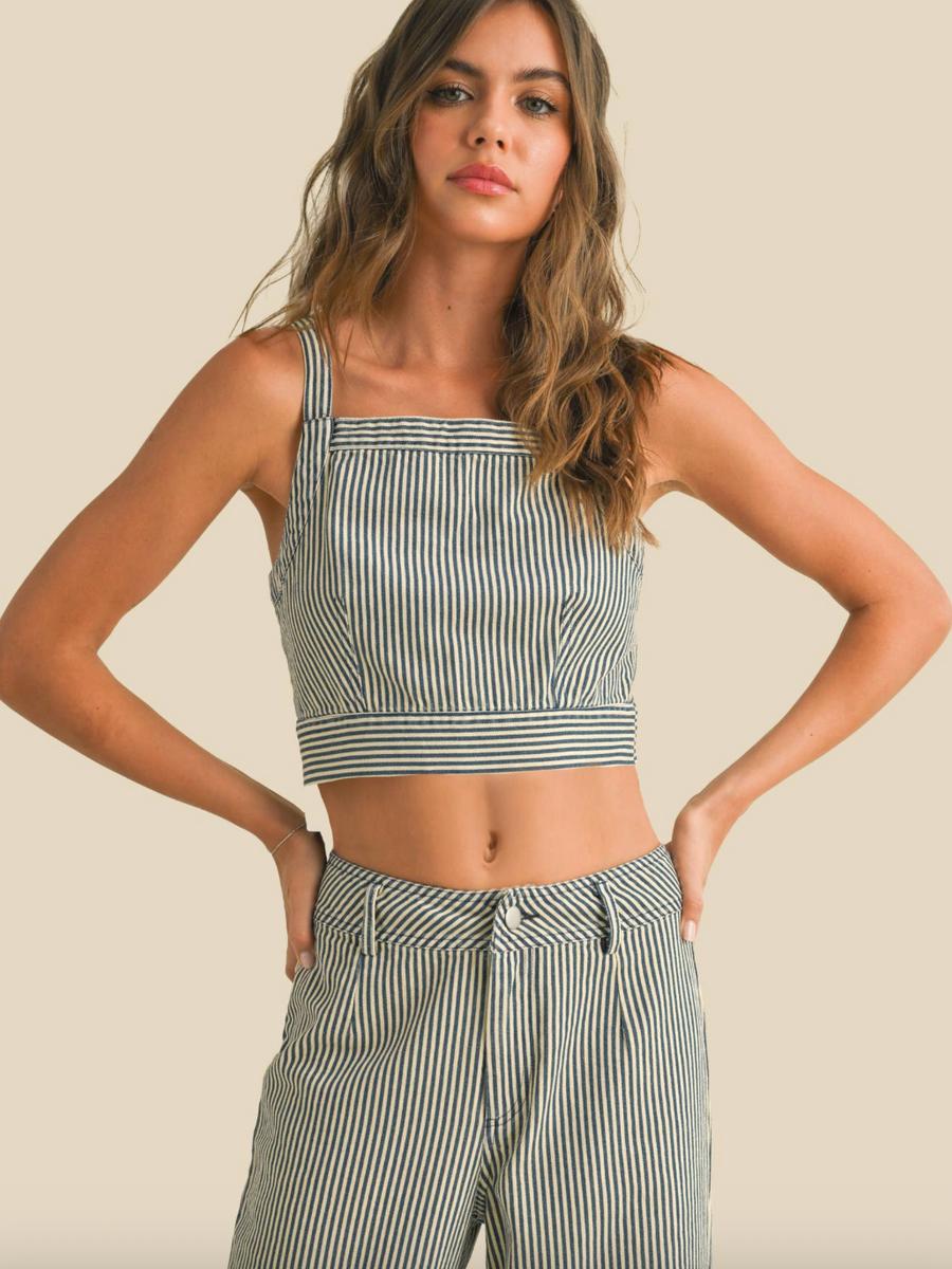 The Bailey Blue Striped Tied in Back Top combines classic stripes with a modern silhouette, featuring a flattering tie-back detail that enhances fit and style. Crafted for comfort and versatility, this top pairs effortlessly with both casual and dressier looks, making it a refined addition to your wardrobe.