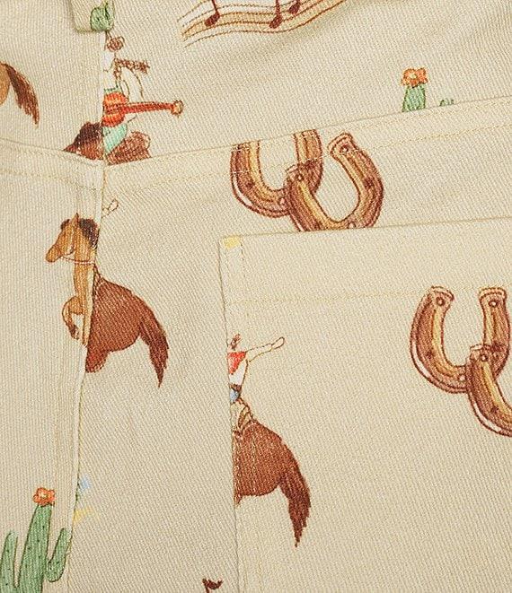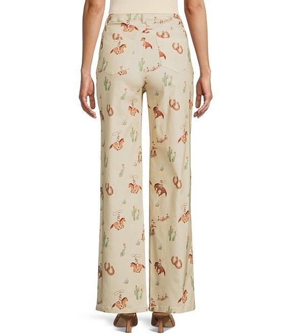 From Bailey Rose, these jeans feature: Horse/cowgirl print High rise Wide leg Full length Cotton/polyester Hand wash Imported.