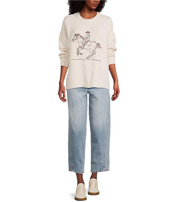 From Bailey Rose, this sweater features: Crew neck Long sleeves Horse embroidered detail Pullover styling Cotton blend Machine wash/tumble dry Imported.