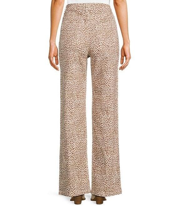 From Bailey Rose, these jeans feature: Animal-printed Mid-rise Belt loops Front button/zip closure 5-pocket styling Full length Wide legs Cotton blend Hand wash Imported.