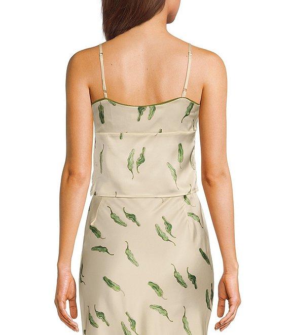 From Bailey Rose, this top features: Green Chili pepper print Square neck Sleeveless Adjustable spaghetti straps Mini top Pullover styling Polyester Hand wash Imported.