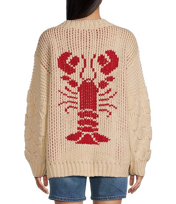 From Bailey Rose, this cardigan features: Cable knit Open neckline Long sleeves Lobster print on back oversized fit Acrylic Hand wash/dry flat Imported.