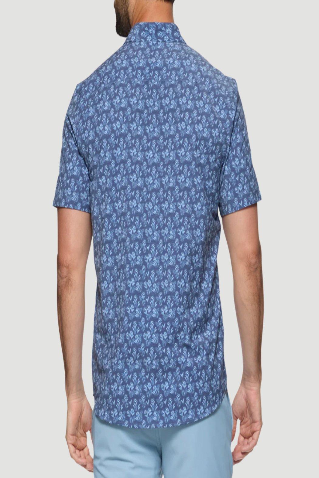 Designed for all-day comfort and versatility with the ideal amount of stretch for increased mobility and a superior fit, this short-sleeved shirt is our go-to as soon as temperatures rise. Expertly crafted with soft, lightweight fabric that stays cool in any situation, and equipped with a hidden eyewear wipe to keep optics clean and clear, it's the perfect shirt for warm weather days or nights due to a collar that stats crisp and sharp. Contrast fabric inside collar stand, back yoke, front placket, and sleeve cuffs. Single front patch pocket; button closures. Tailored athletic fit.